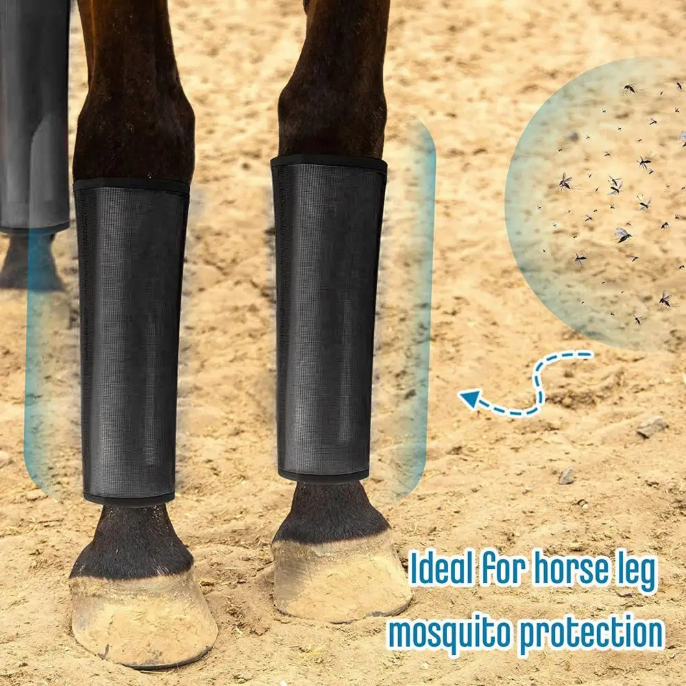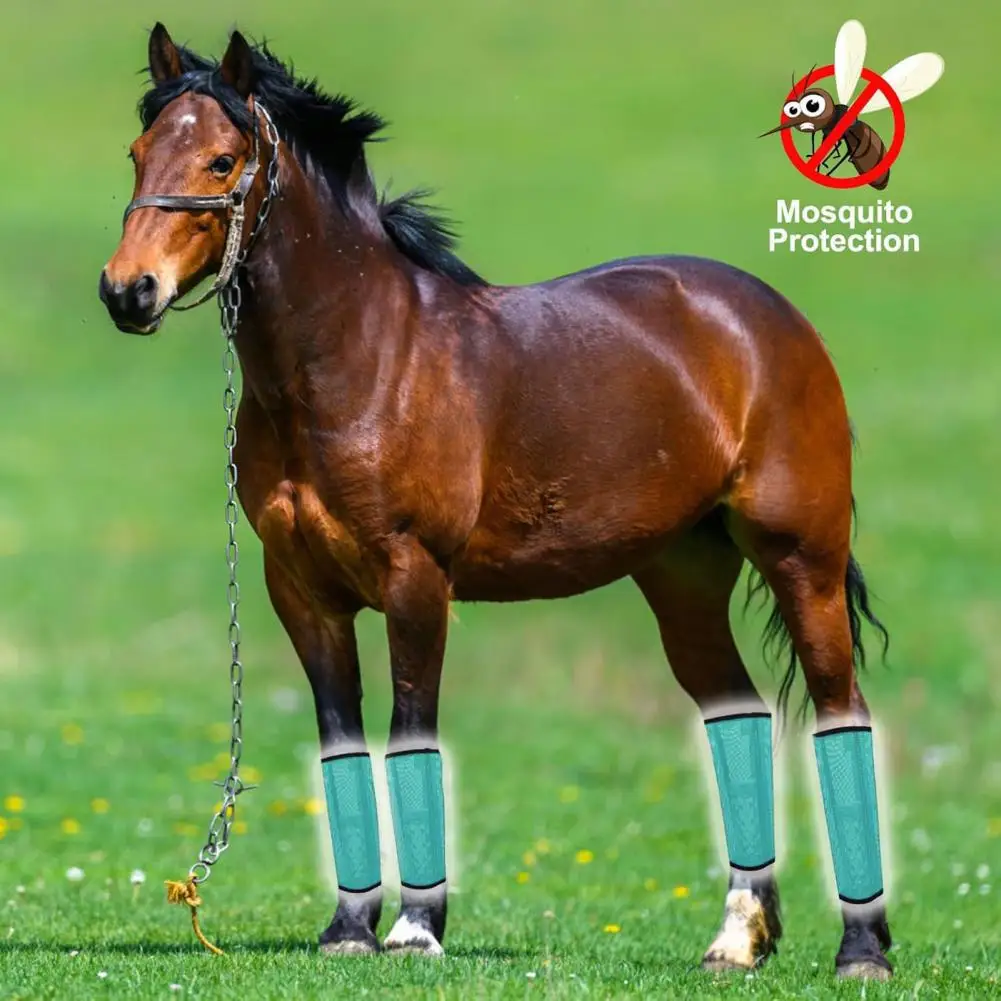 Lot de 4 guêtres anti-mouches pour chevaux, leggings respirants en maille, fournitures pour chevaux pour réduire les dommages causés par les sabots et la fatigue des jambes.