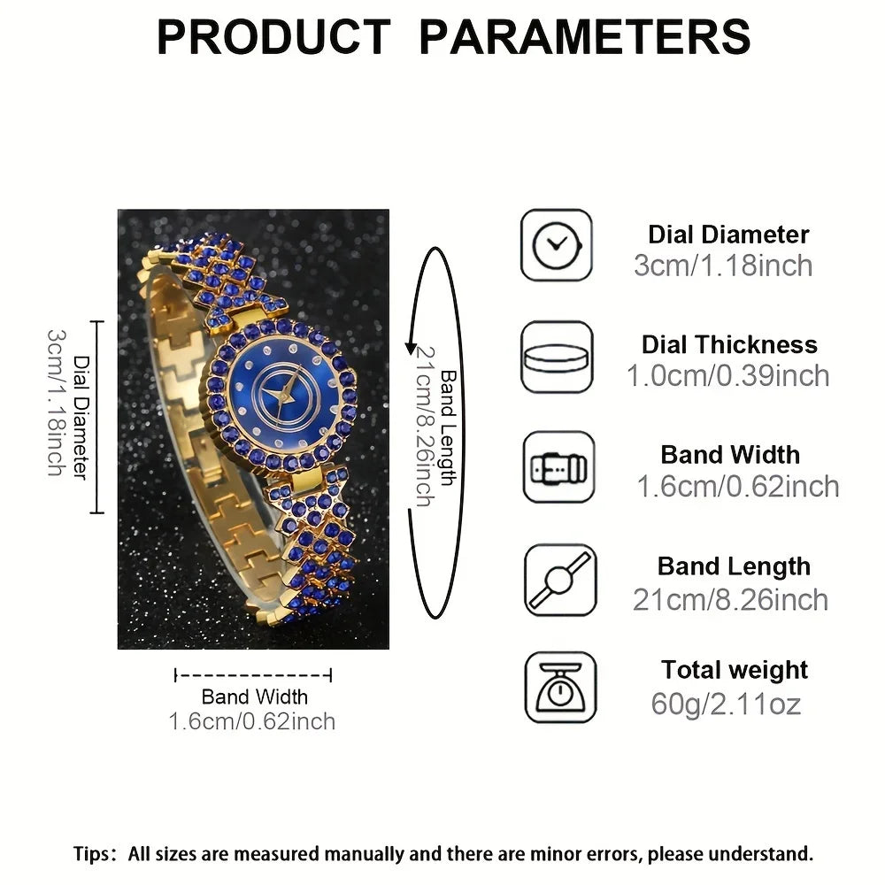 L'ensemble comprend une montre de luxe en alliage à boîtier rond , des boucles d'oreilles, un collier, un bracelet et une bague assortis , créant un look complet et raffiné pour toutes les occasions.