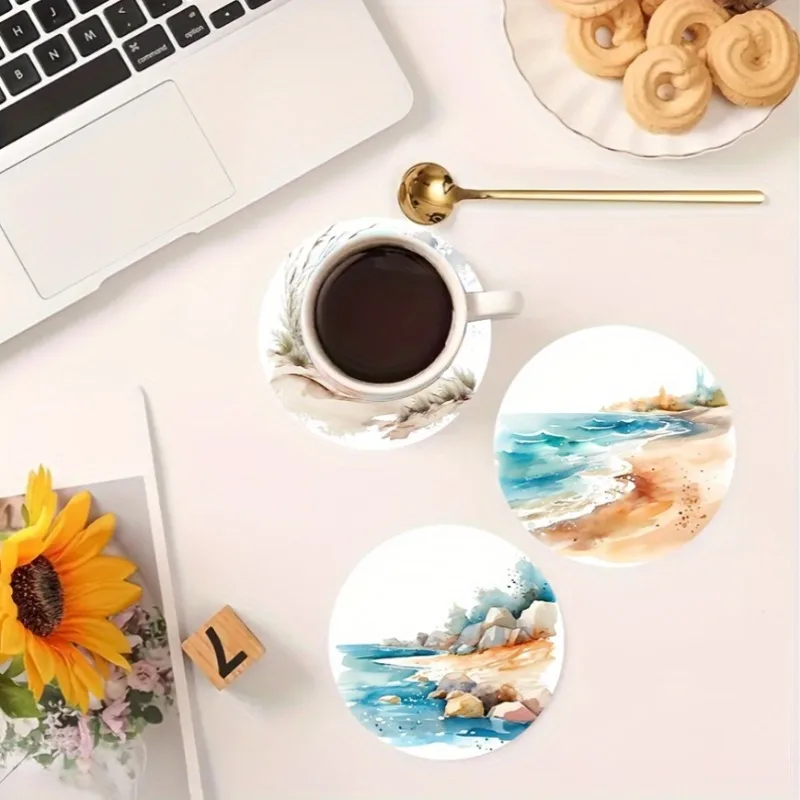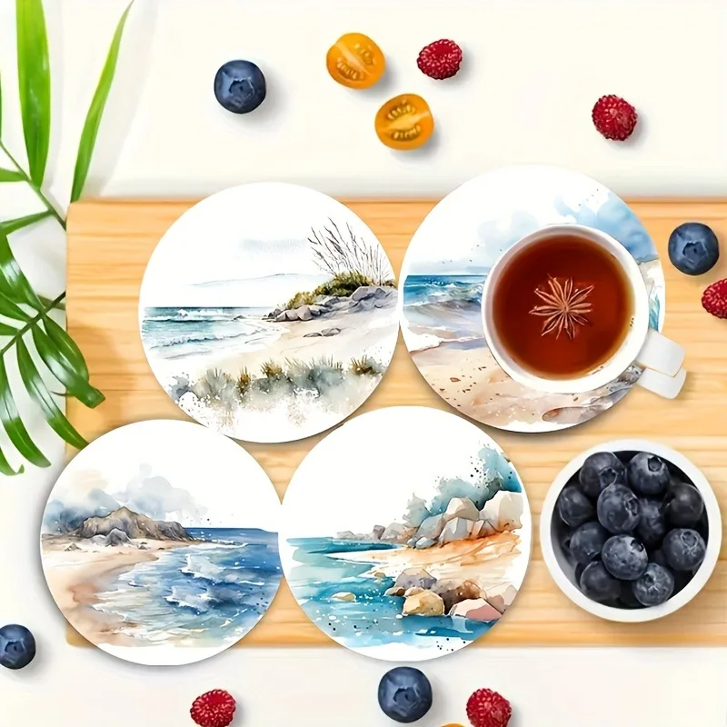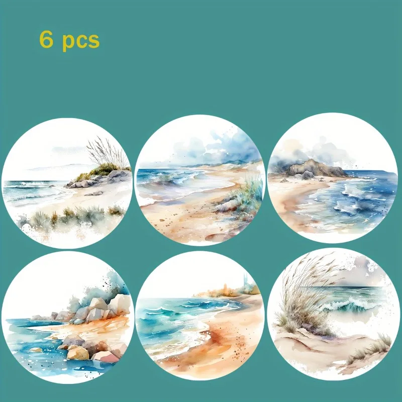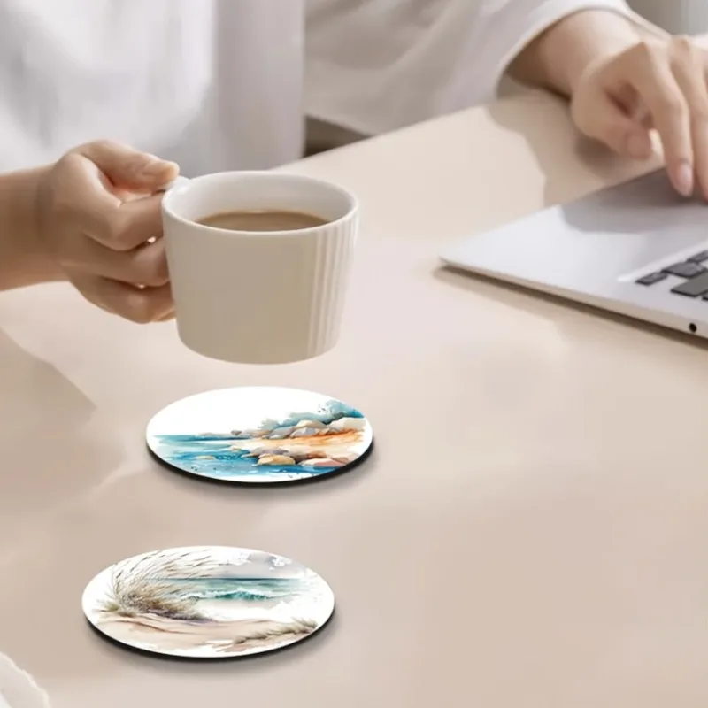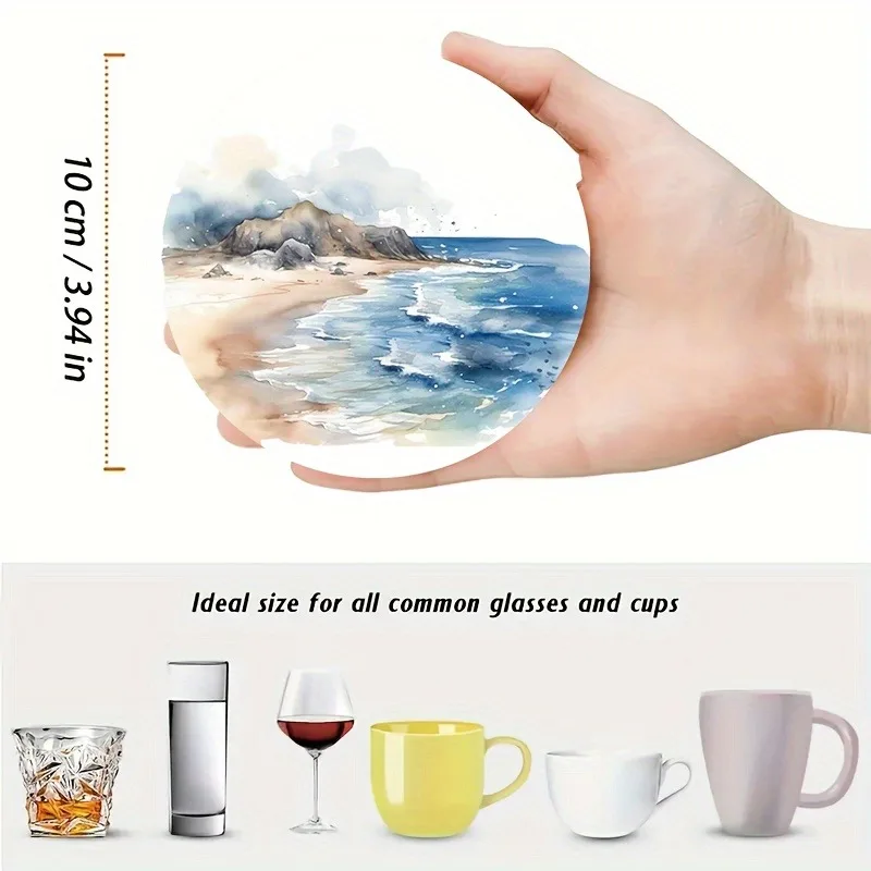 Dessous de verre - Ensemble de 6 pièces à faire soi-même avec surface antidérapante et résistante à la chaleur, parfait pour la protection de la table et la décoration côtière 5D Beach Art