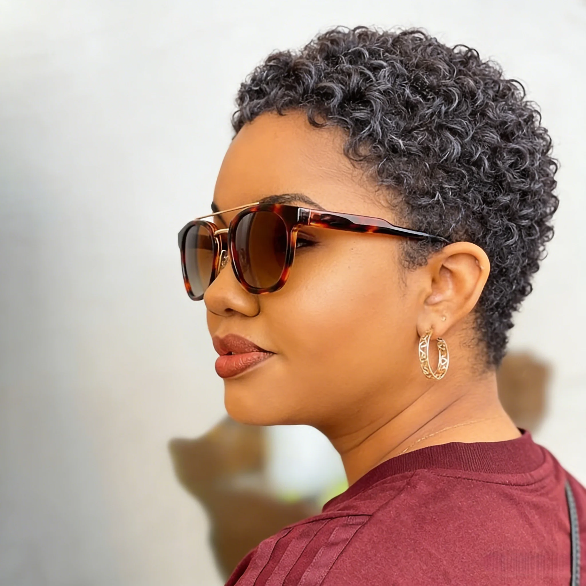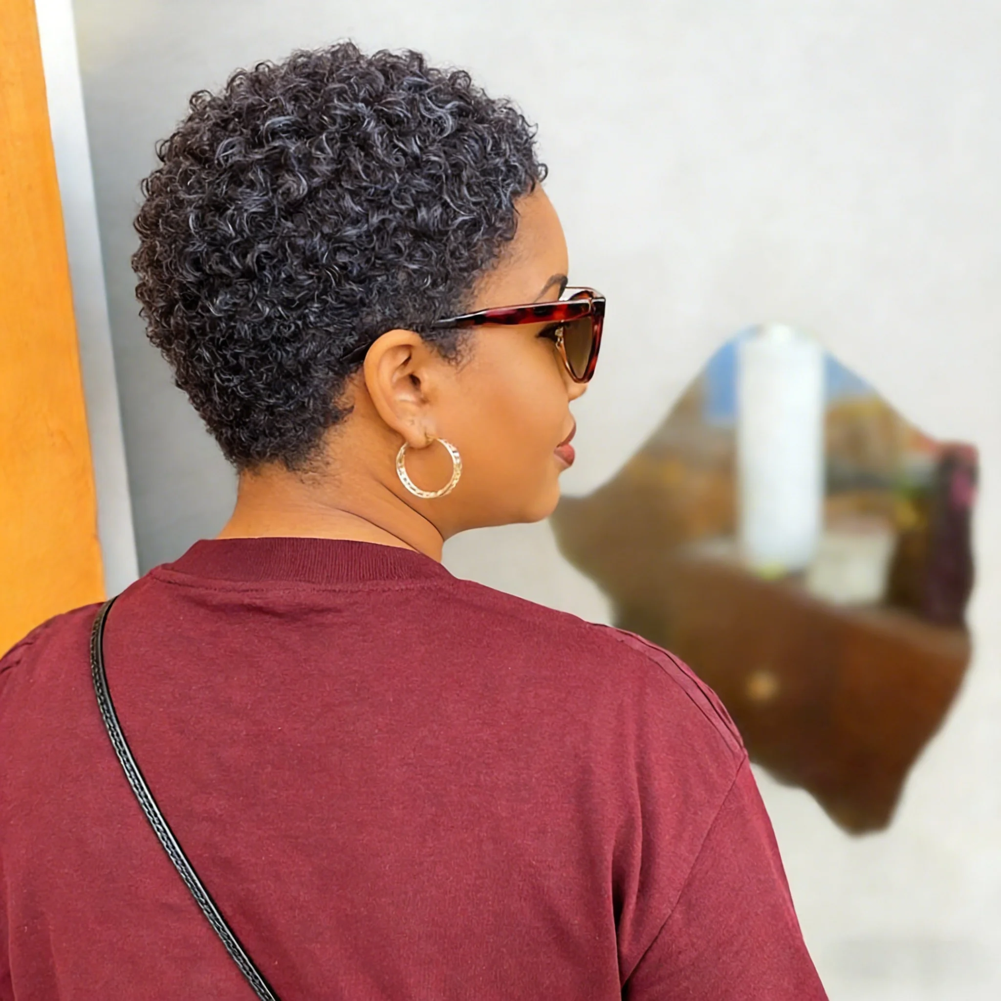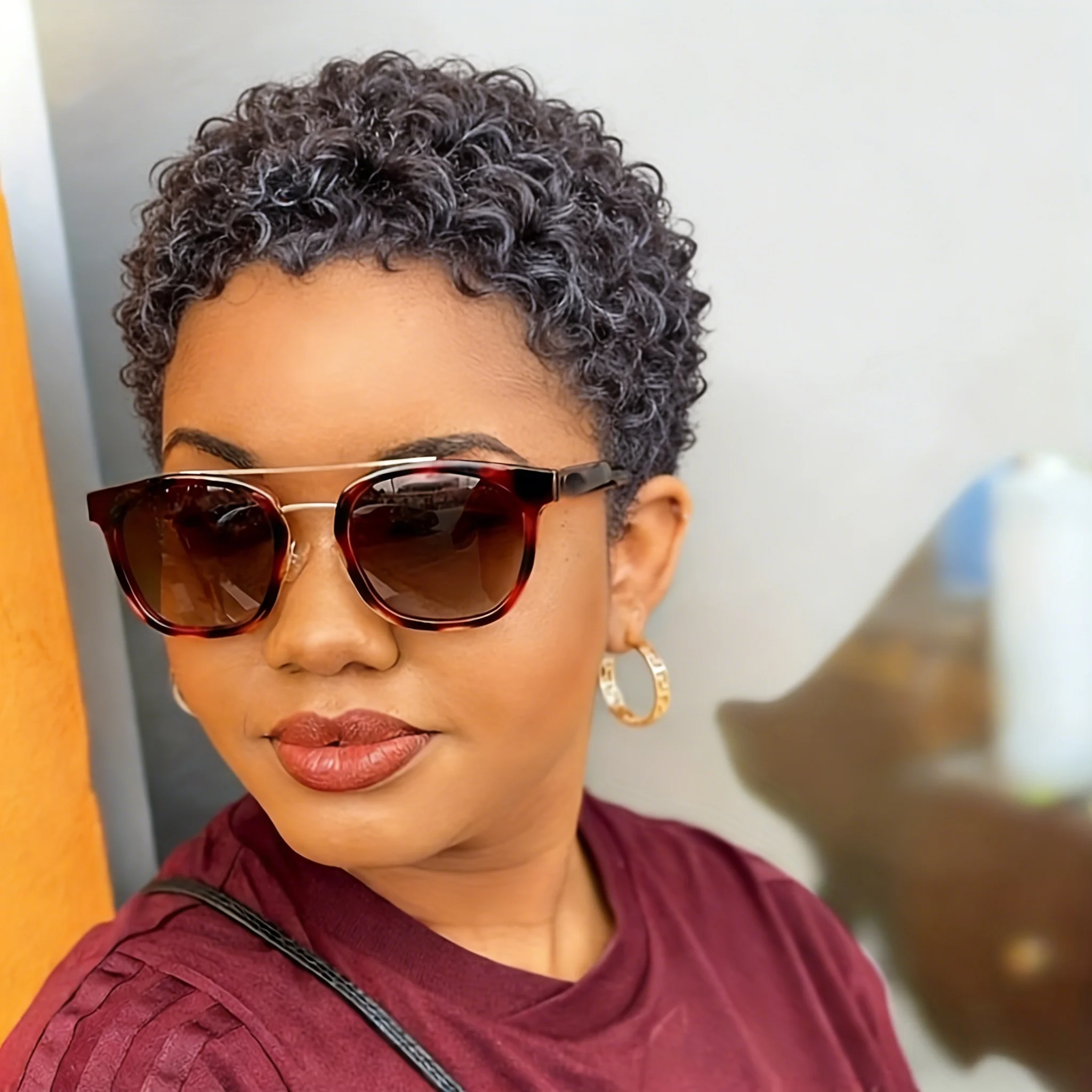 Cette perruque courte et bouclée, de style pixie, est confectionnée à 100 % en cheveux humains pour un rendu naturel et doux. Grâce à sa coupe dégradée et sa fabrication entièrement à la machine, elle offre un volume naturel et un confort optimal au quotidien.