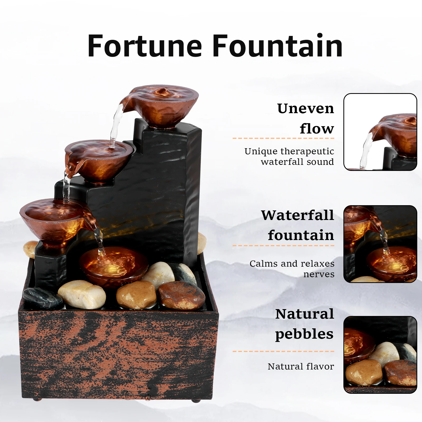 [Mini fontaine de bureau] Nos mini fontaines sont conçues en petites tailles et offrent une variété de styles. Fontaine en bronze : 11 x 9 x 17 cm, petite fontaine à lumière chaude : 11,5 x 11,5 x 11,5 cm, théière suspendue : 12 x 14 x 28 cm, triple niveau or/argent : 14 x 14 x 21 cm. Parfaites pour les salles de bains, les décorations de table zen d'extérieur ou les fontaines d'extérieur pour porches. Veuillez vérifier les dimensions avant achat.