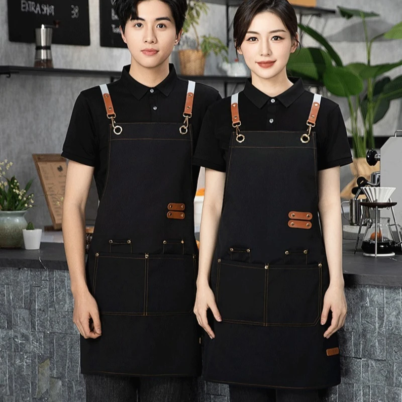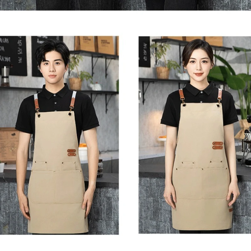 Tablier de cuisine en toile à double épaule imperméable et résistant à l'huile