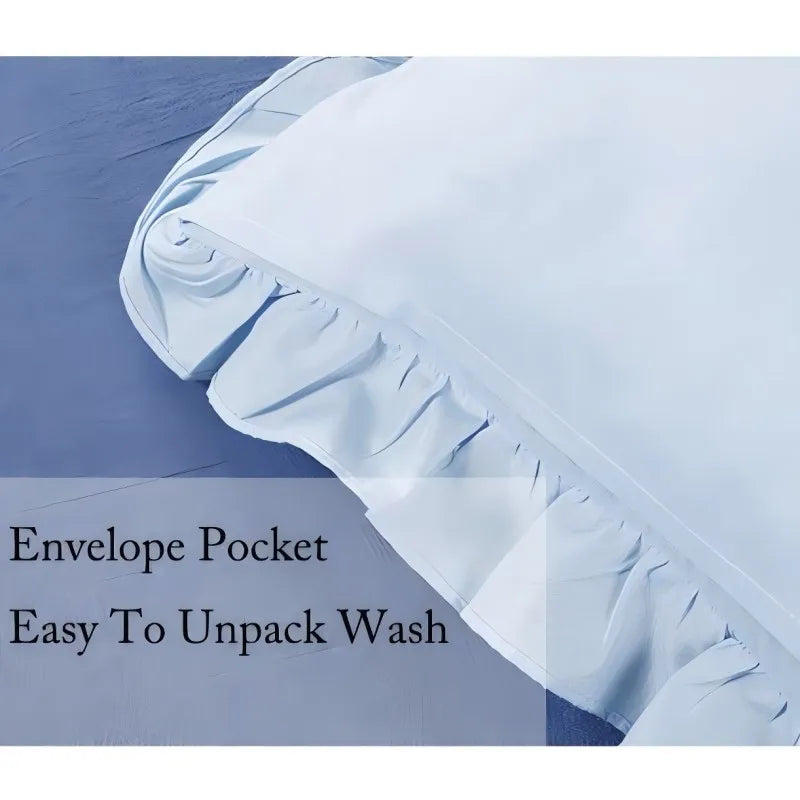 Utsøkt håndverk: Alle stoffkantene er godt sydd for å forhindre frynsing. Kombinasjonen av den rene fargen gjør putetrekkene mer idylliske.