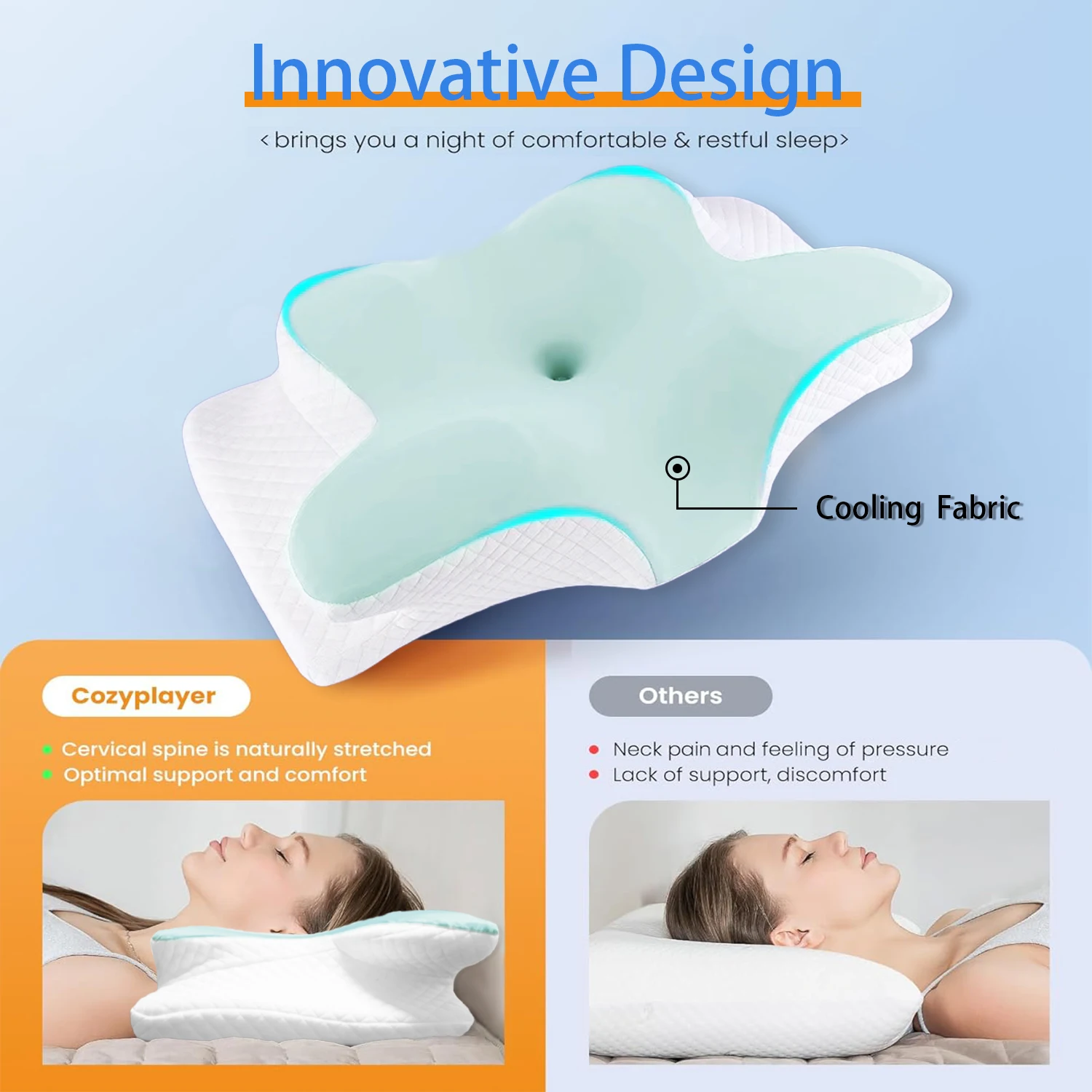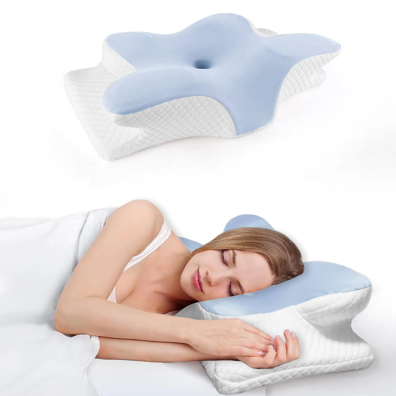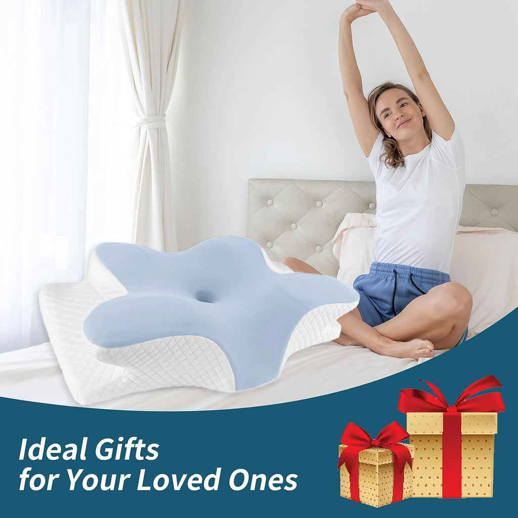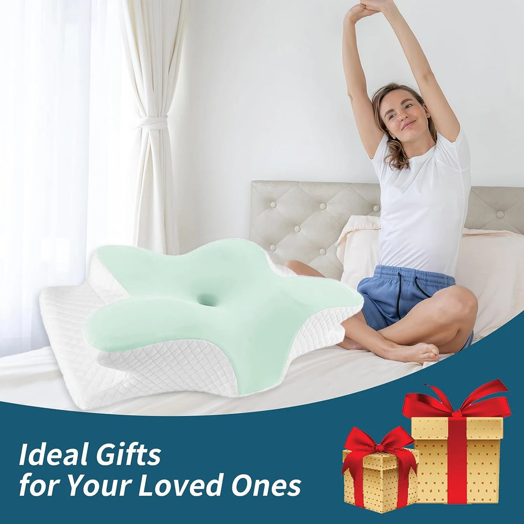 Kjølende 3D sommerfuglnakkepute cervikalpute for nakke og skulder, nakkepute i minneskum, oppgradert ergonomisk ortopedisk nakkestøttepute for ryggmage, premium kontursengpute med vaskbart trekk