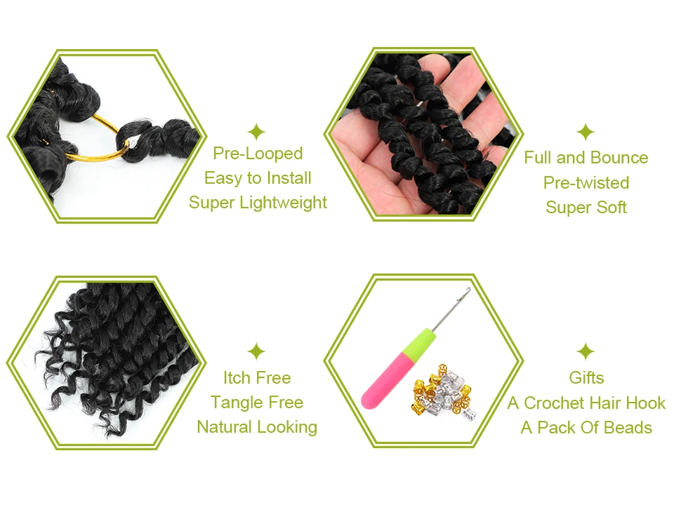 Passion Twist Heklehår passer for jenter i alle aldre. Twistene holder godt, egnet for daglig bruk, svømming, utendørs, fest, cosplay, forestilling, gave, bryllup osv. Kom og vis din skjønnhet, du vil bli den lyseste stjernen.