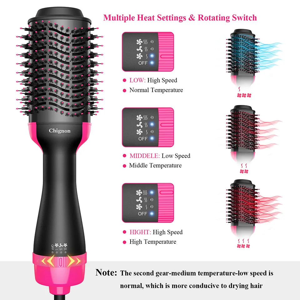 Tre varme- og to hastighetsinnstillinger: tilfredsstiller dine ulike behov for tørking, krølling og retting. Lav: sterk vind/lav temperatur, Middels: sakte vind/middels temperatur, Høy: sterk vind/høy temperatur.