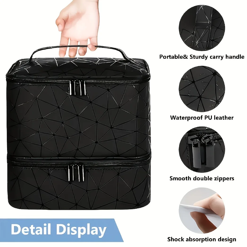 Hold neglesakene dine perfekt organisert med denne doble neglelakk-organiseringsboksen , designet for enkel oppbevaring, reise og hverdagsbruk.