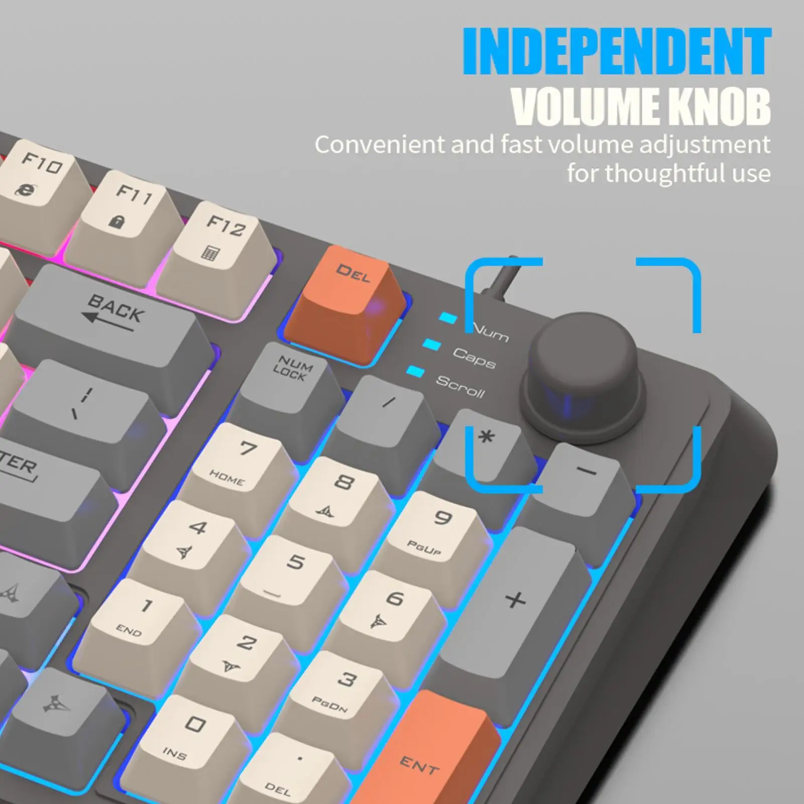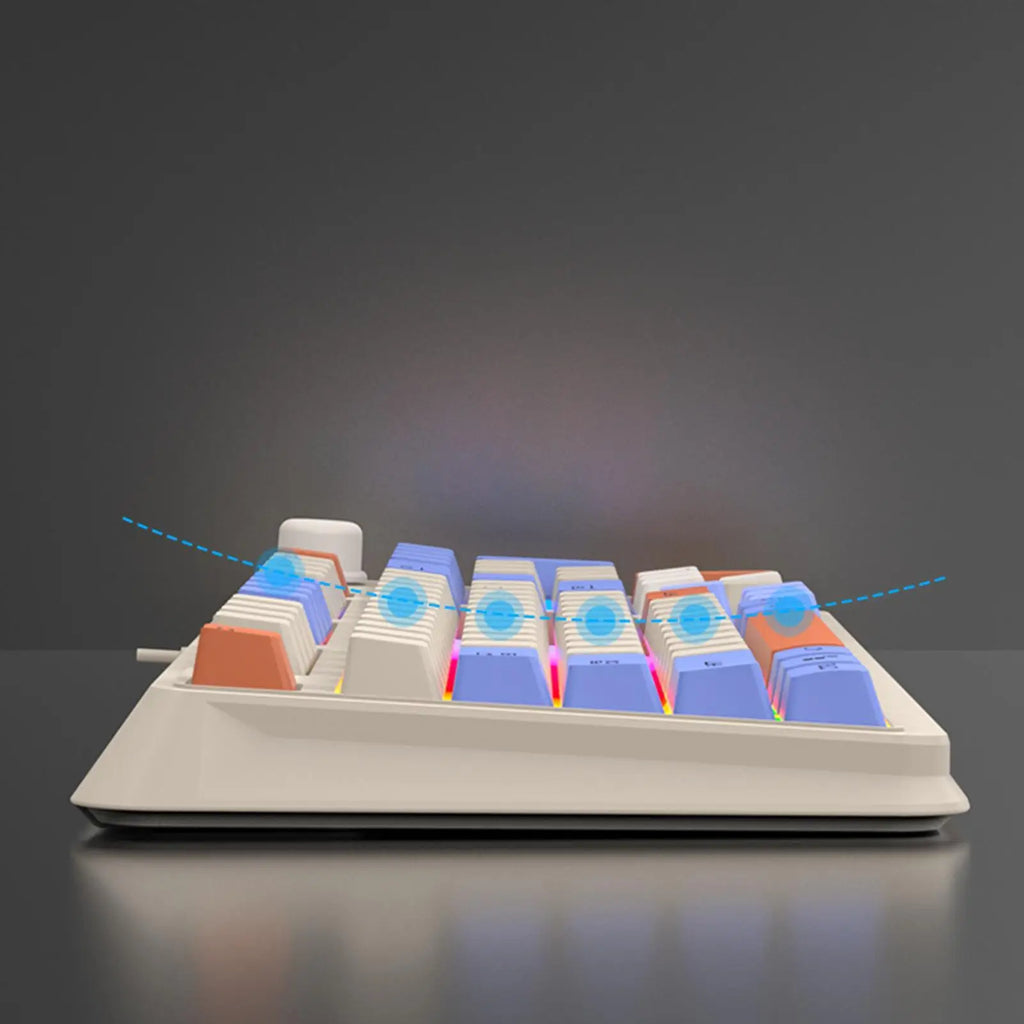 Dette K82-spilltastaturet har et kompakt oppsett med 94 taster og trefarget bakgrunnsbelysning. Med kablet USB-tilkobling og plug-and-play gir det en mekanisk følelse for jevn spilling og daglig PC-bruk.