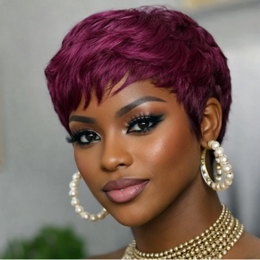 Denne 10 cm korte, rette parykken med pixie-klipp er laget av 100 % menneskehår med 150 % tetthet for mykt, naturlig volum. Med en stilig blanding av brunt og burgunder med lagdelt tekstur, gir den et dristig, men elegant utseende for hverdagsbruk.