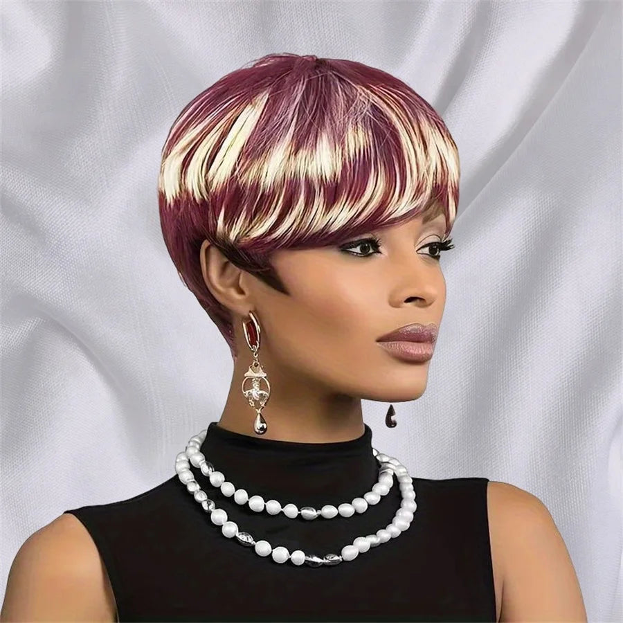 Denne 15 cm lange, rette parykken med pixie-klipp er laget av 100 % menneskehår for et glatt og naturlig utseende. Med en kort, lagdelt frisyre og maskinlaget konstruksjon gir den en sikker og komfortabel passform for uanstrengt hverdagsbruk.