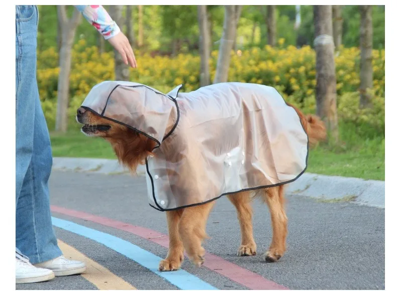 Vi ser ut som dinosaurer. Den gjennomsiktige fargen og det unike designet vil gi hunden din forandringer i klærne sine. Når du reiser på regnværsdager og bruker en hunderegnfrakk på veien, er den en interessant hund på gaten.