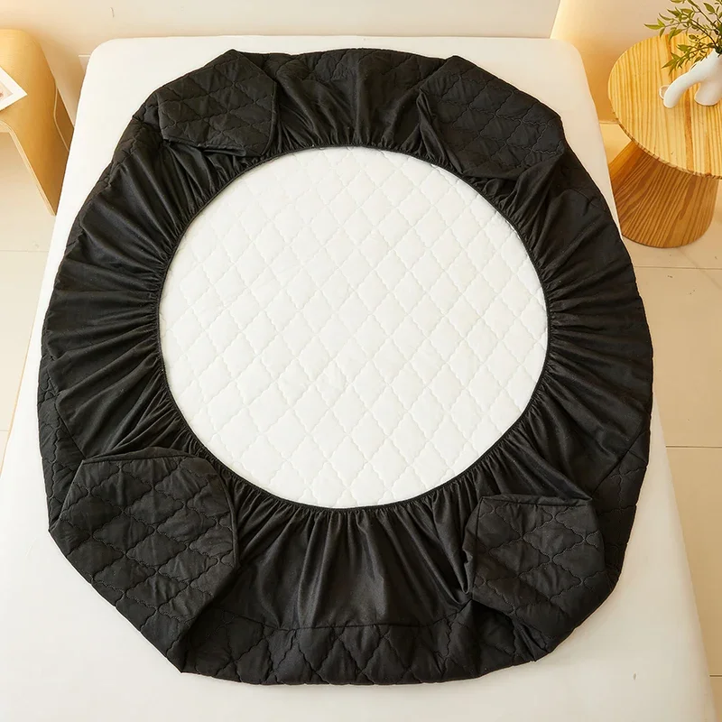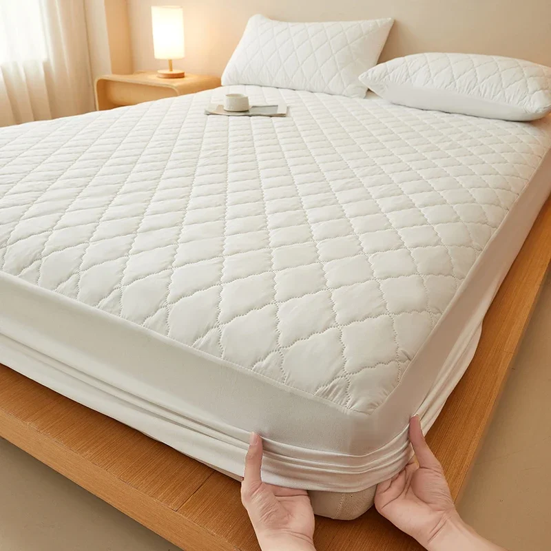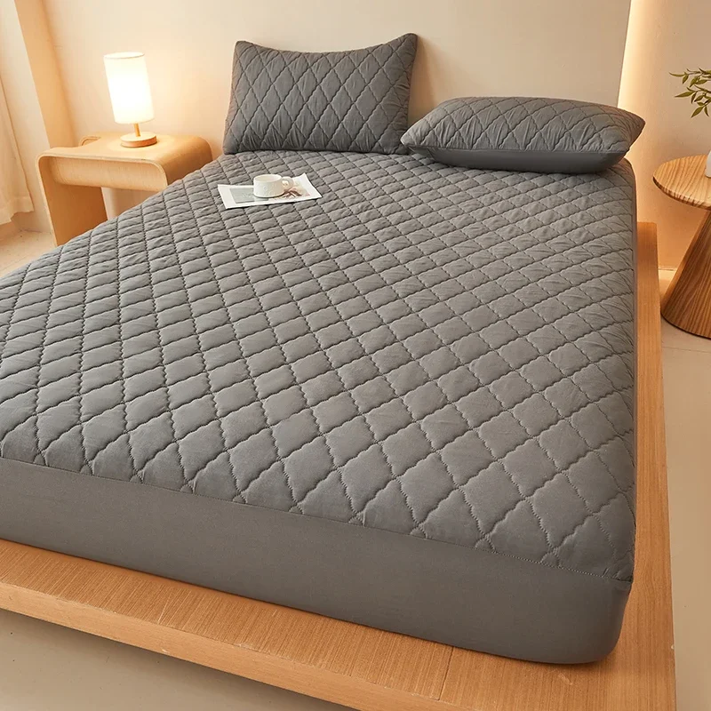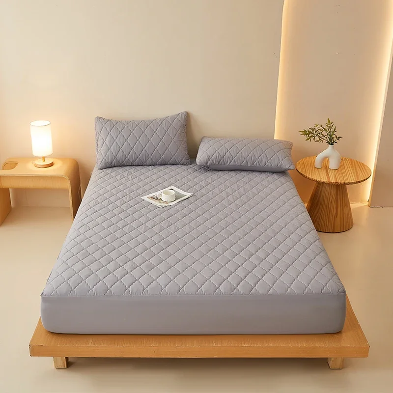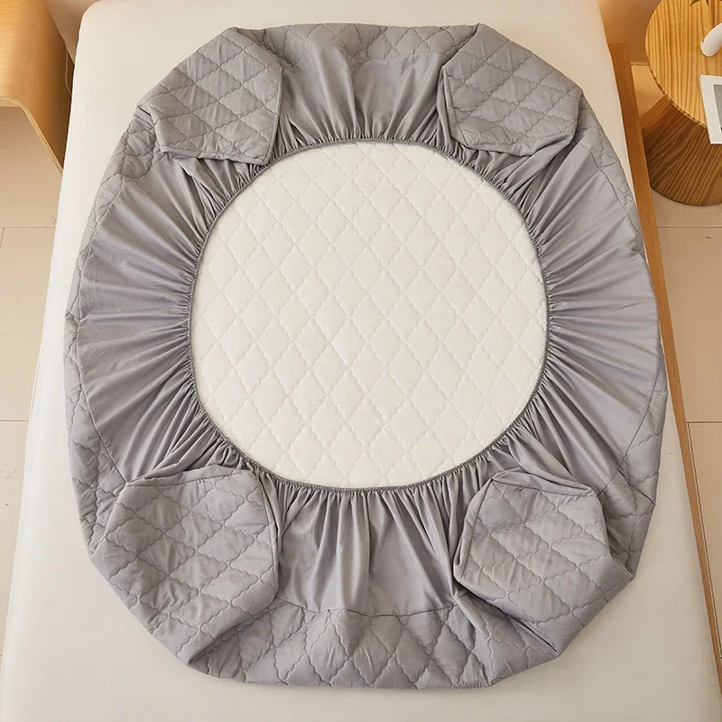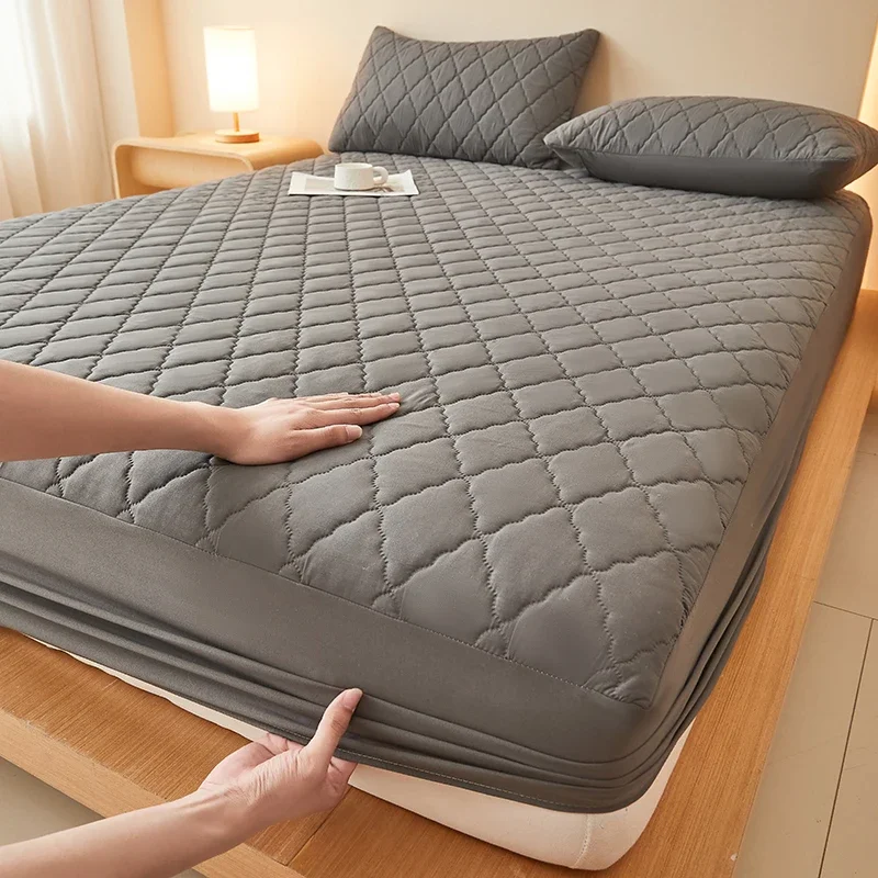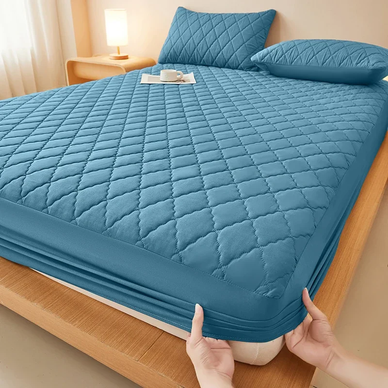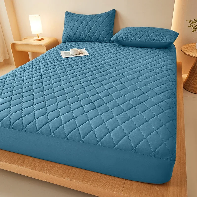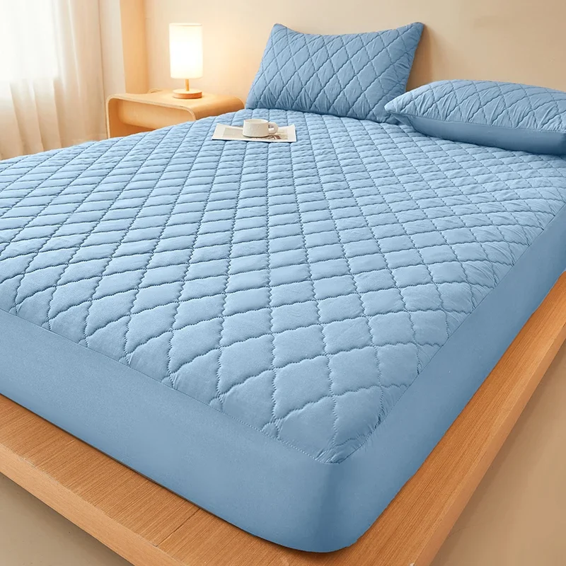 Ensfarget enkelt madrasstrekkbeskytter, med elastisk bånd, enkelt å installere og bytte ut.