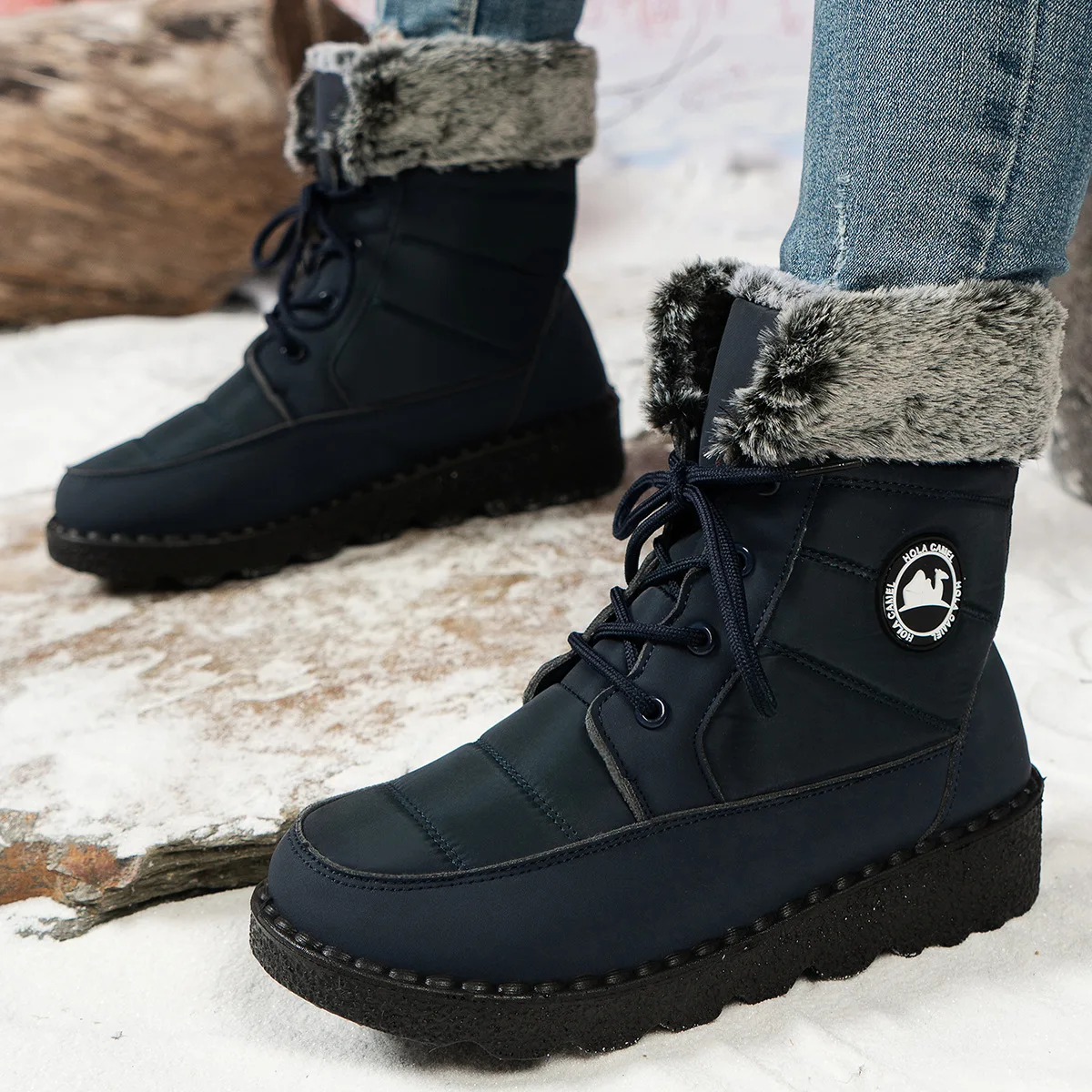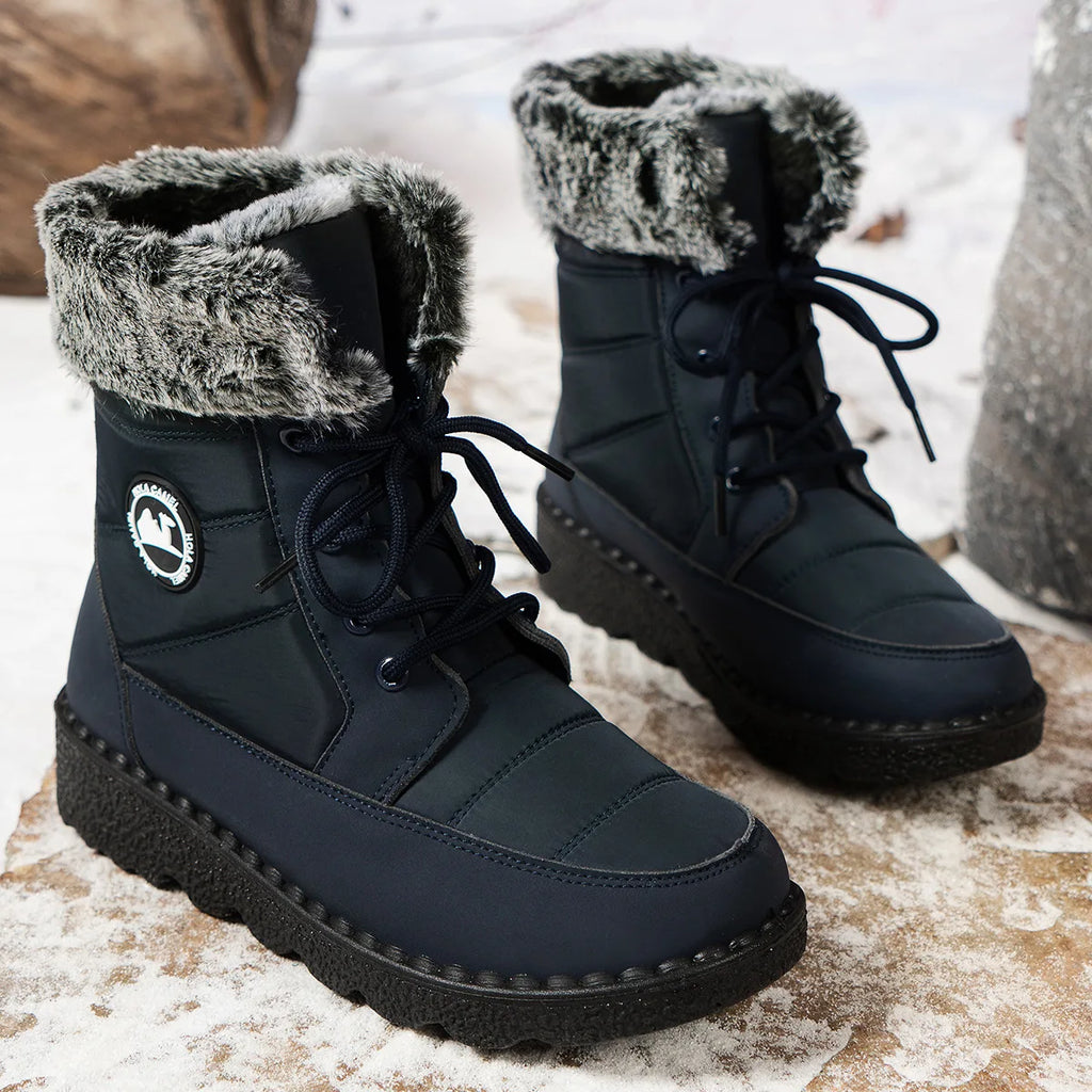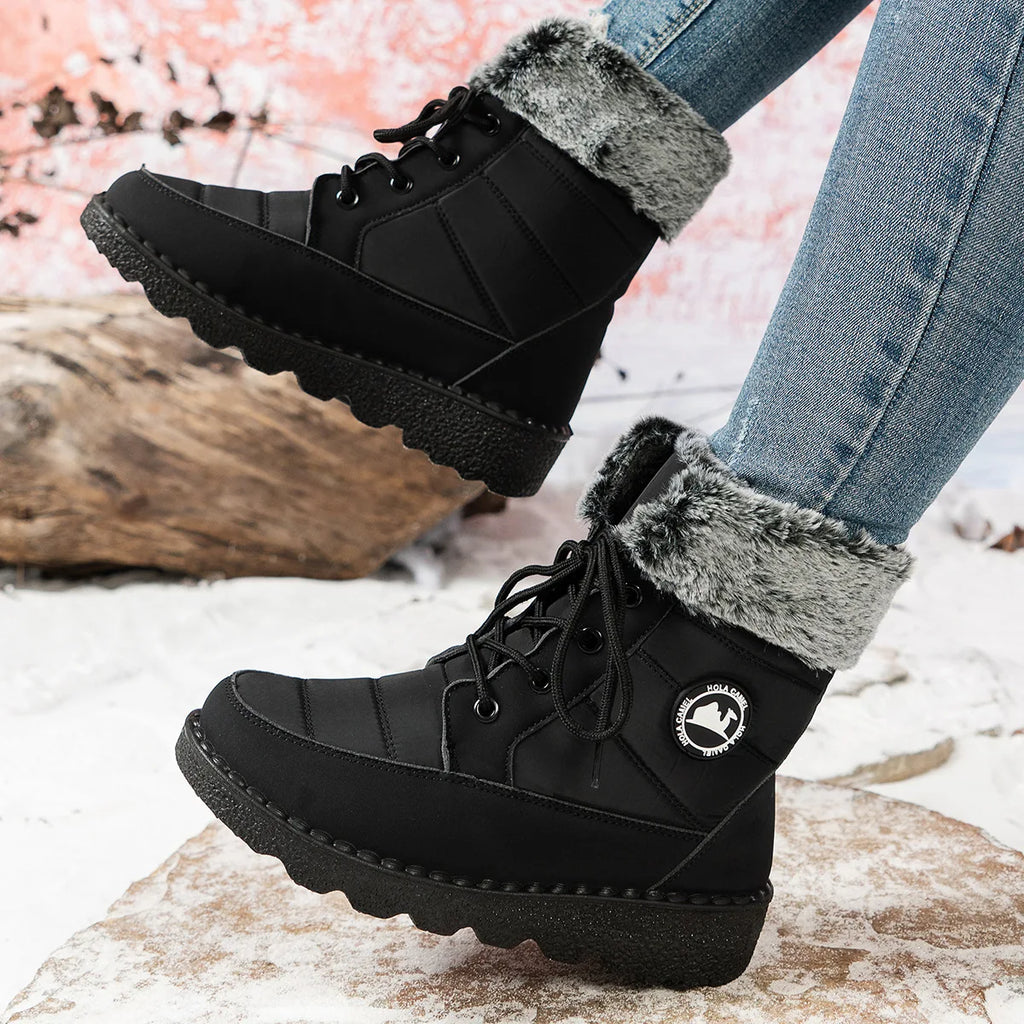 Møt vinteren med stil med disse damestøvlettene med platå og hæl. De er fôret med myk pels for optimal varme, vanntette og designet for å holde føttene tørre og varme. Det trendy designet passer perfekt til vinterantrekk, fra hverdagsbruk til kvelder ute.