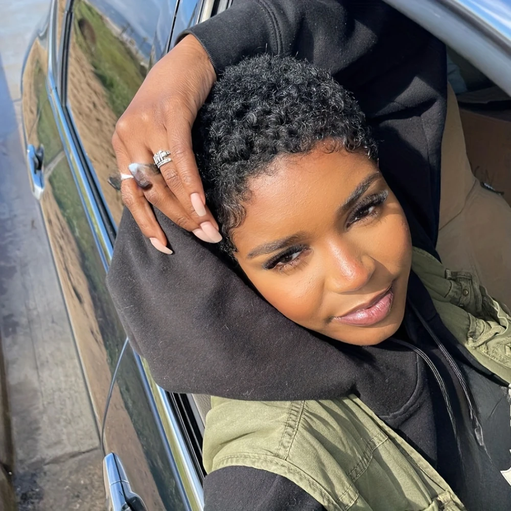 🖤 A chic Afro curly pixie that adds effortless style and confidence.