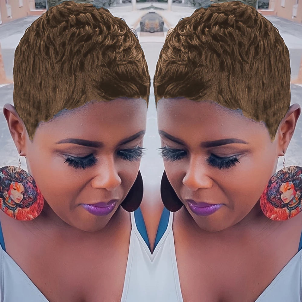 This 4-inch pixie cut wig features a curly wave texture and 150% density for a full, natural look. Made from 100% human hair with a comfortable full machine-made cap, it’s perfect for daily wear, work, or special events. Lightweight, stylish, and easy to maintain — a timeless short cut that always looks chic.