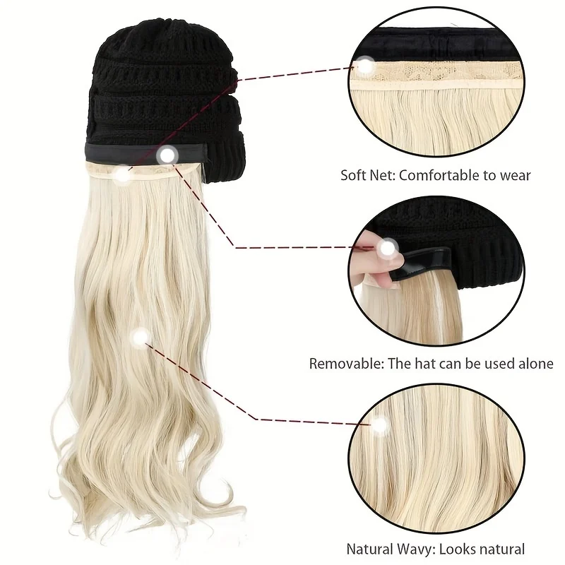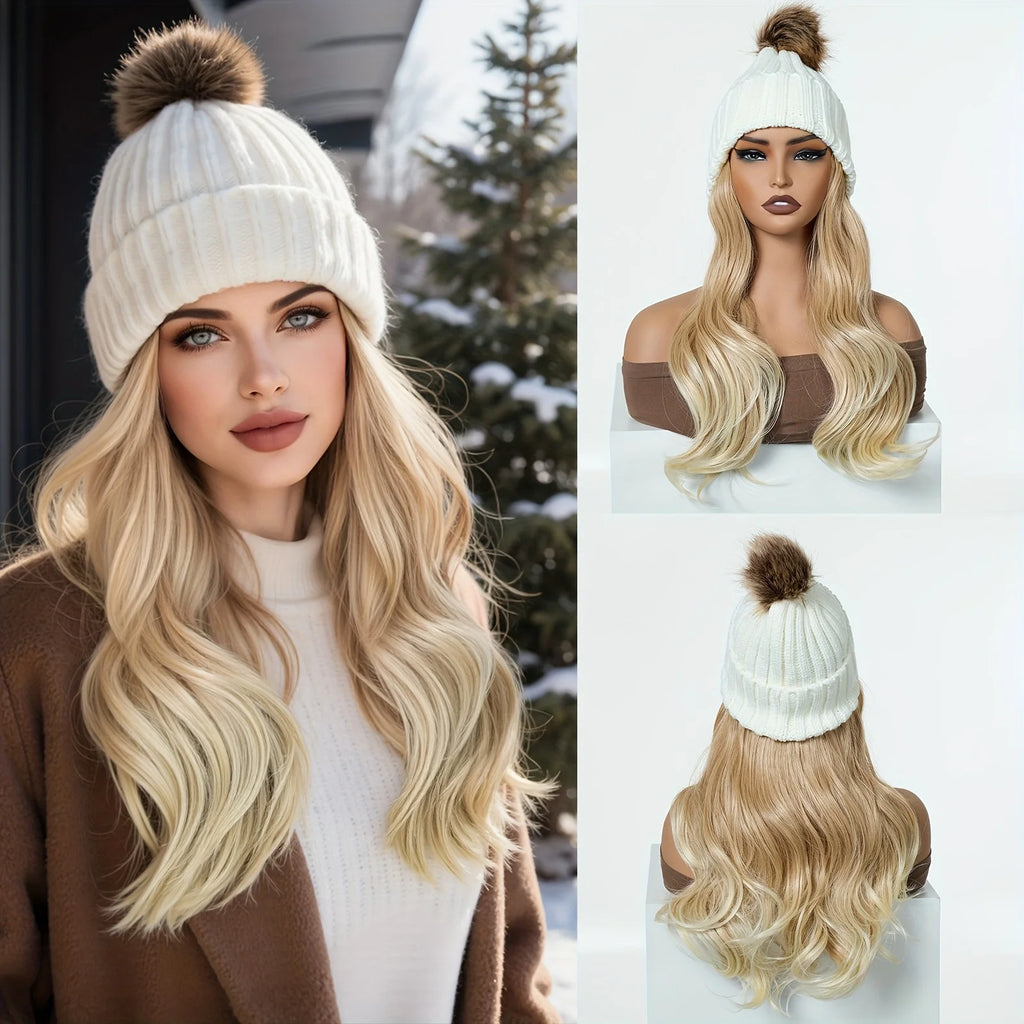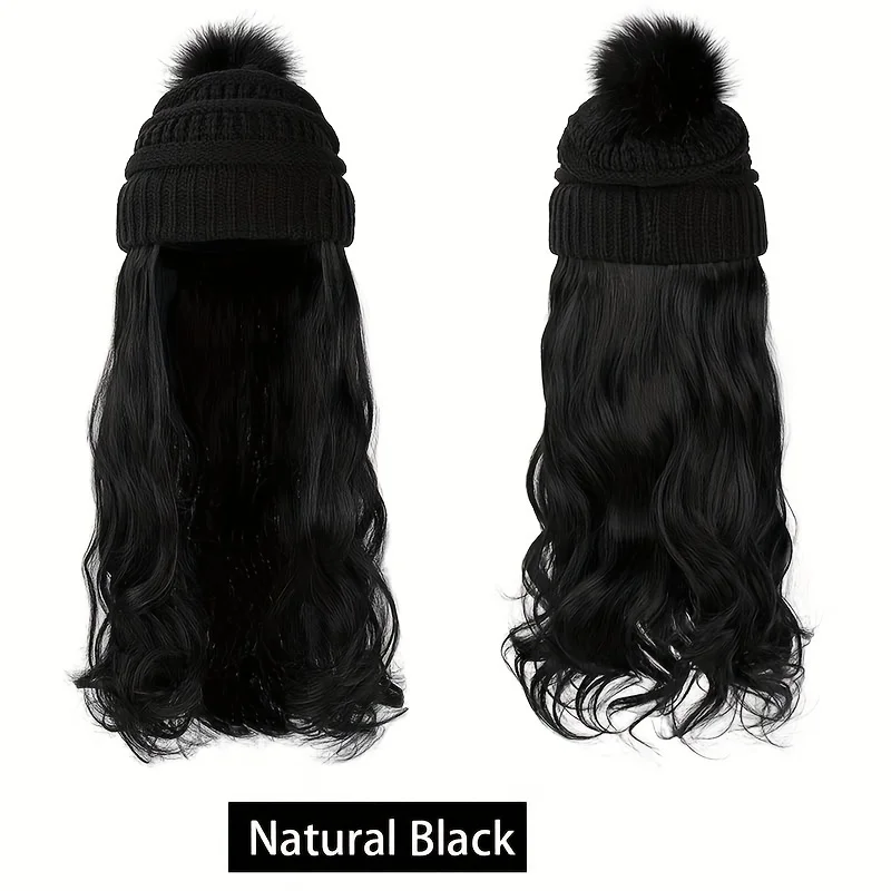 Stay cozy and stylish with this 20-inch long water wavy synthetic hairpiece beanie hat. Featuring a soft knit pom cap and a detachable woven wig, it blends winter warmth with instant hairstyle flair. Comfortable, lightweight, and easy to wear — perfect for cold days without sacrificing style.