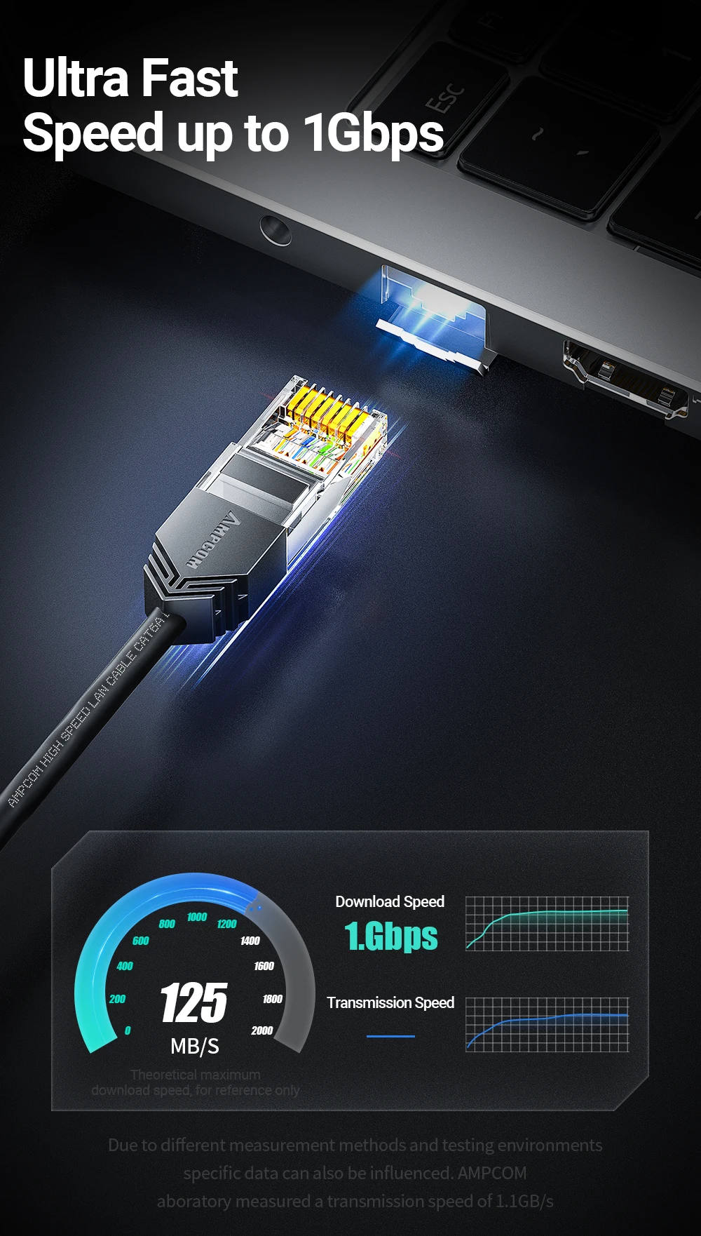 Ultra-thin Ethernet cable/ 1Gbps Transmission Speed/ Gold Plated Pins/ Flame-retardant outer sheath/ Better AMPCOM Model Appearance/ Authoritative Laboratory Tested