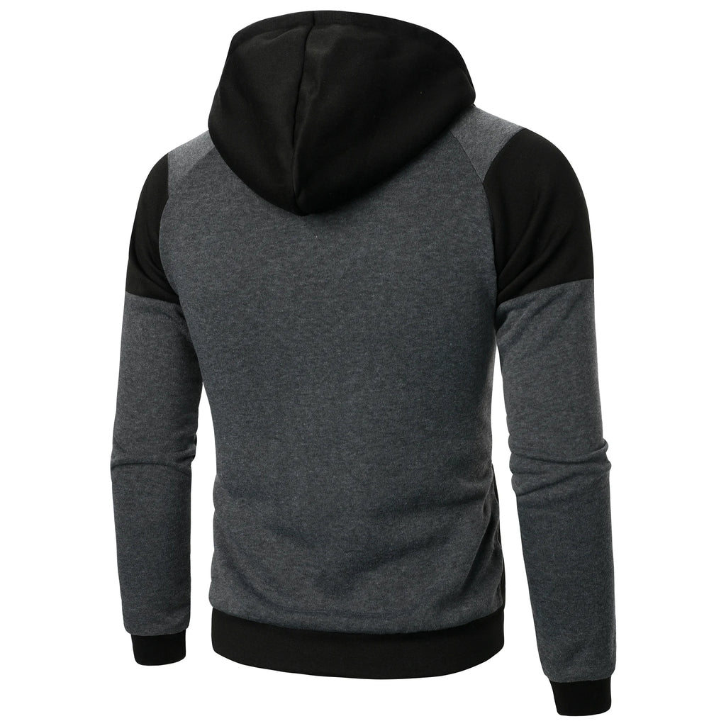 This men’s hooded top features a stylish spliced design with long sleeves for a modern athletic look. Soft, warm, and comfortable, it’s ideal for casual wear, workouts, or everyday street style during the colder seasons.