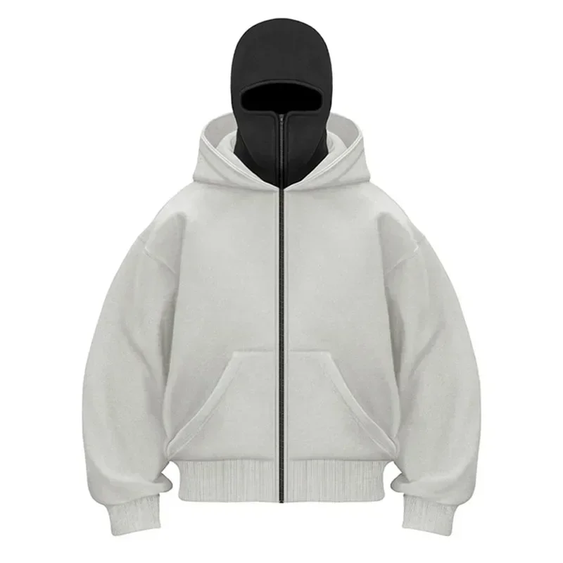 Y2k Vintage Winter Streetwear Couple Tops Balaclava Integrated Hoodie Men Soild Color Ninja Pullover Hip Hop Splicing Sweatshirt