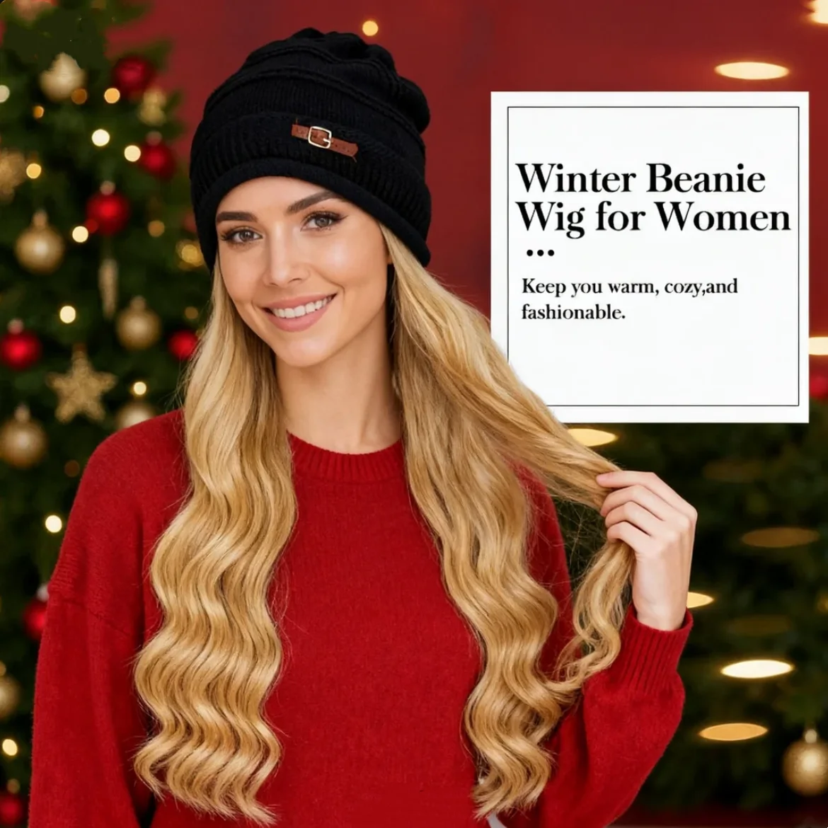 This women’s winter beanie features a soft plush design with a detachable synthetic hair piece and neckerchief style. Cozy, lightweight, and easy to wear—perfect for cold-weather daily looks.