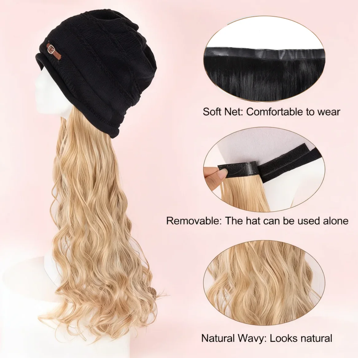 • Detachable synthetic hair piece