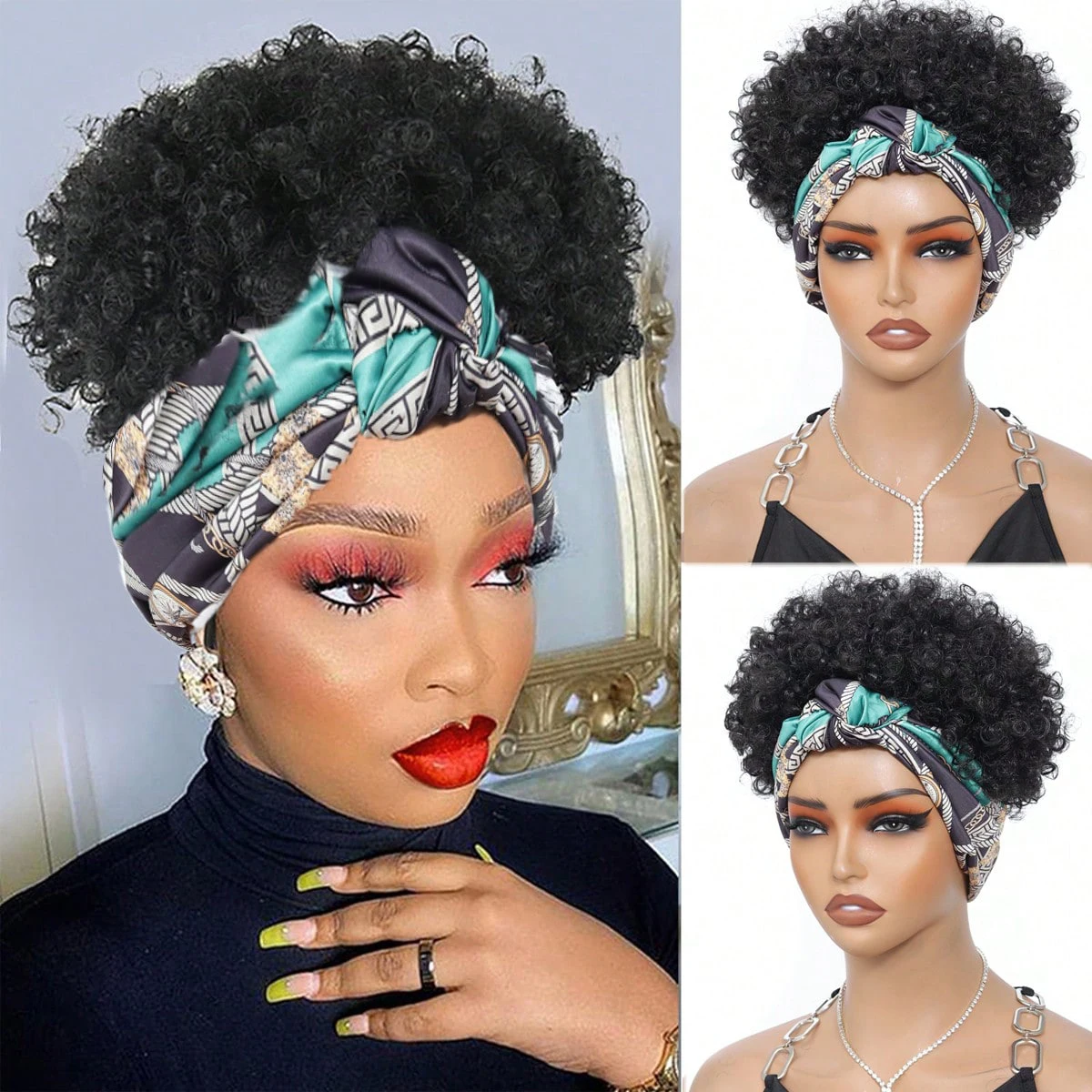 This black headband wig features short afro kinky curls made from soft synthetic hair. With an attached headband for quick wear, it’s lightweight, secure, and perfect for effortless everyday style.