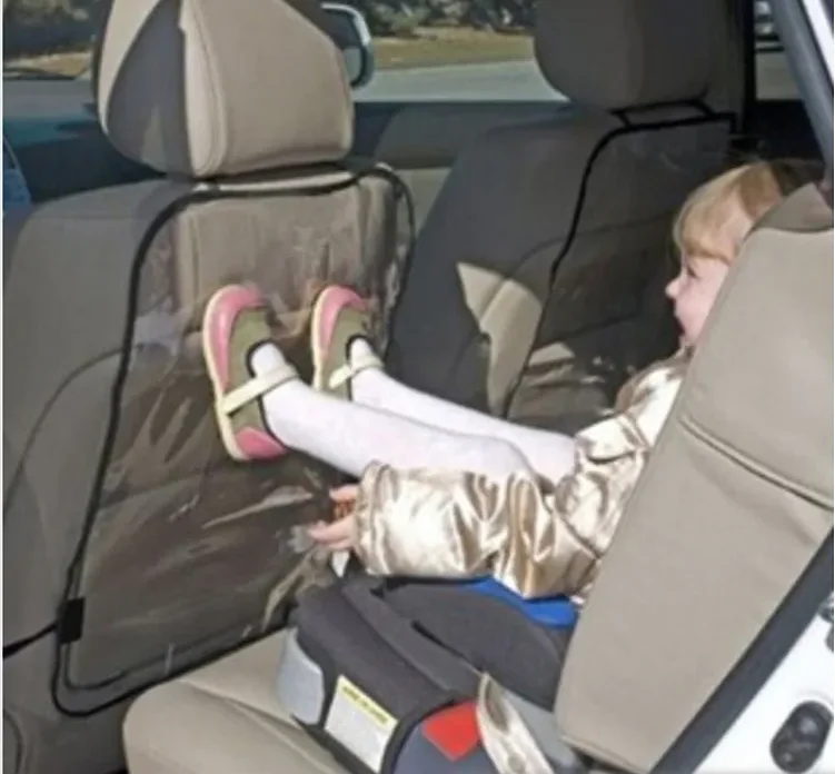 car seat back protector: legs are not long enough, so they are easy to kick the back of car seat when sitting in the back seat,anti-kick protetctive cover,Transparent Car Seat Back Mat