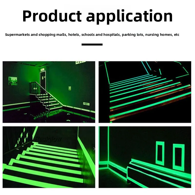 Enhance safety with this green fluorescent tape designed for stairs, fire safety warnings, and anti-collision marking. It absorbs light and glows at night, helping prevent accidents in low-light areas. Durable, easy to apply, and perfect for homes, stages, corridors, and emergency zones.