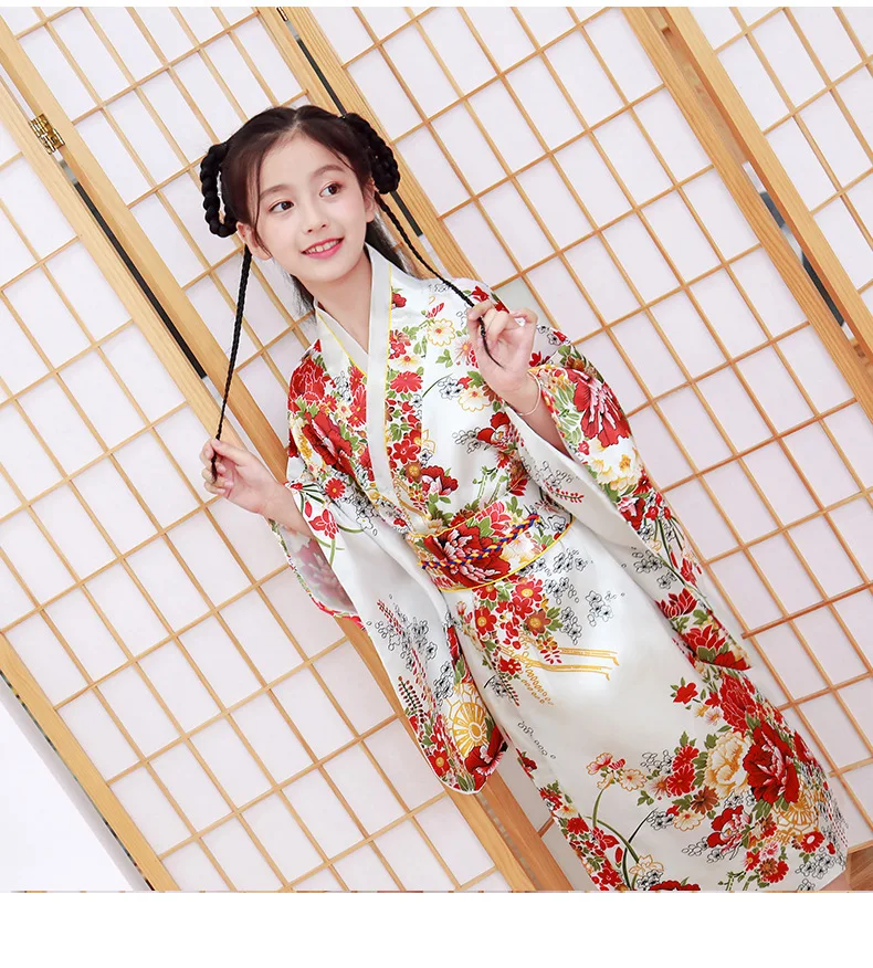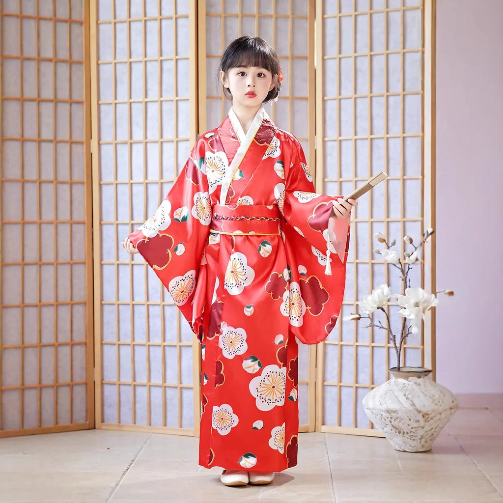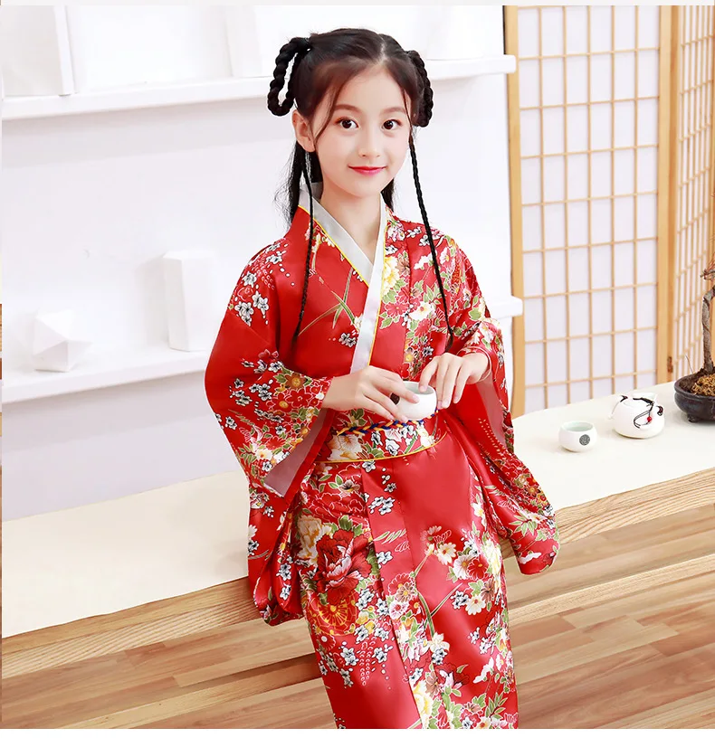 Dress your child in timeless Japanese elegance with this luxury satin Yukata kimono for girls. Designed with classic oriental details and a matching obi belt, it’s perfect for cultural performances, stage shows, cosplay, or special events. Soft, lightweight, and graceful — a beautiful novelty national costume.