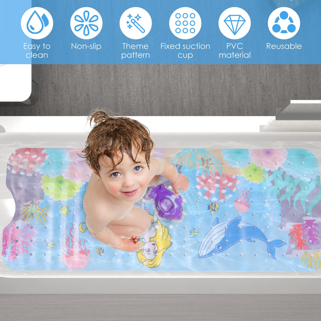 Size : Measuring about 40x16 inches (100x40 cm) , the bath mat covers the entire bathtub for enhanced safety . Ideal for children's showers , it's also toddler and senior friendly , avoiding slips in the bathtub