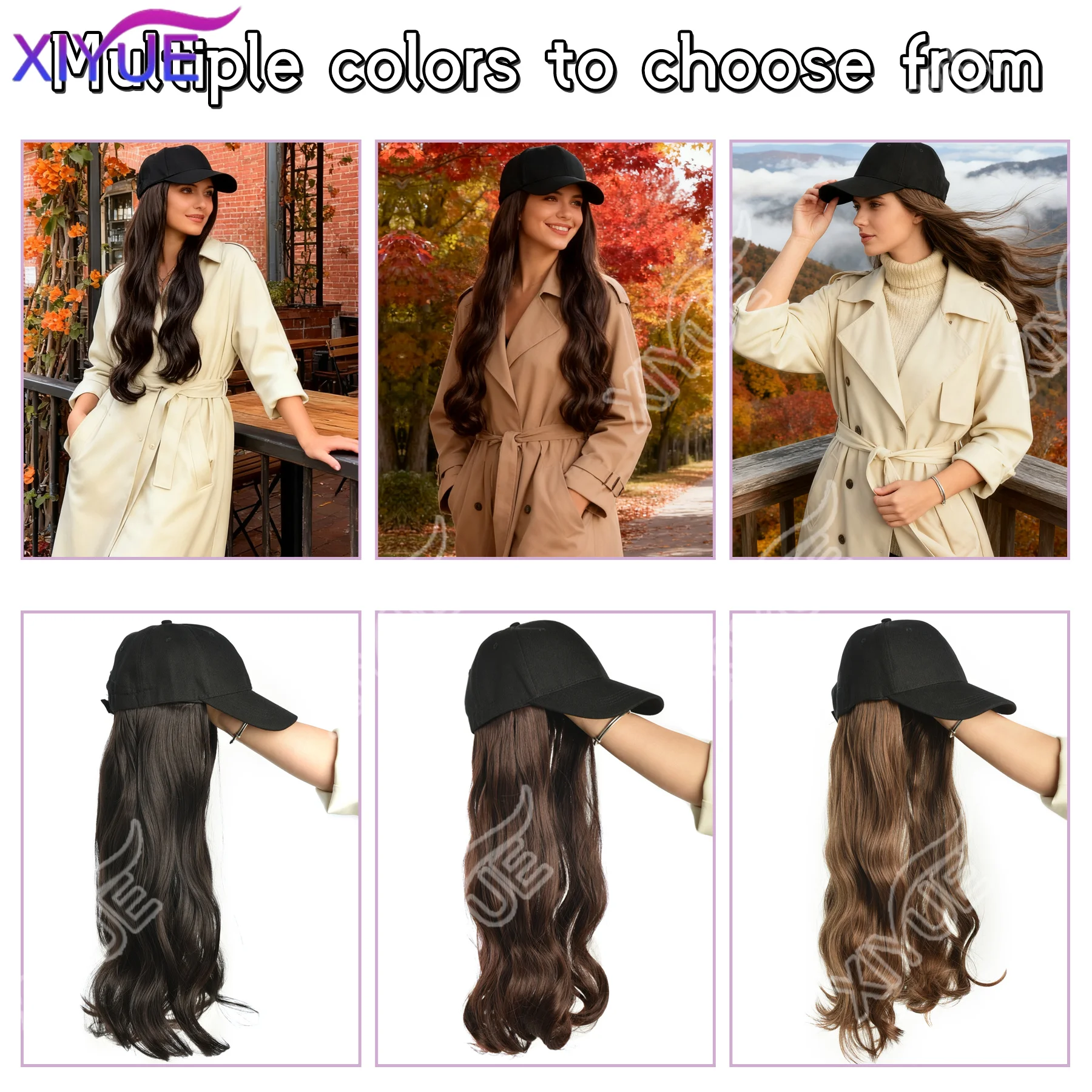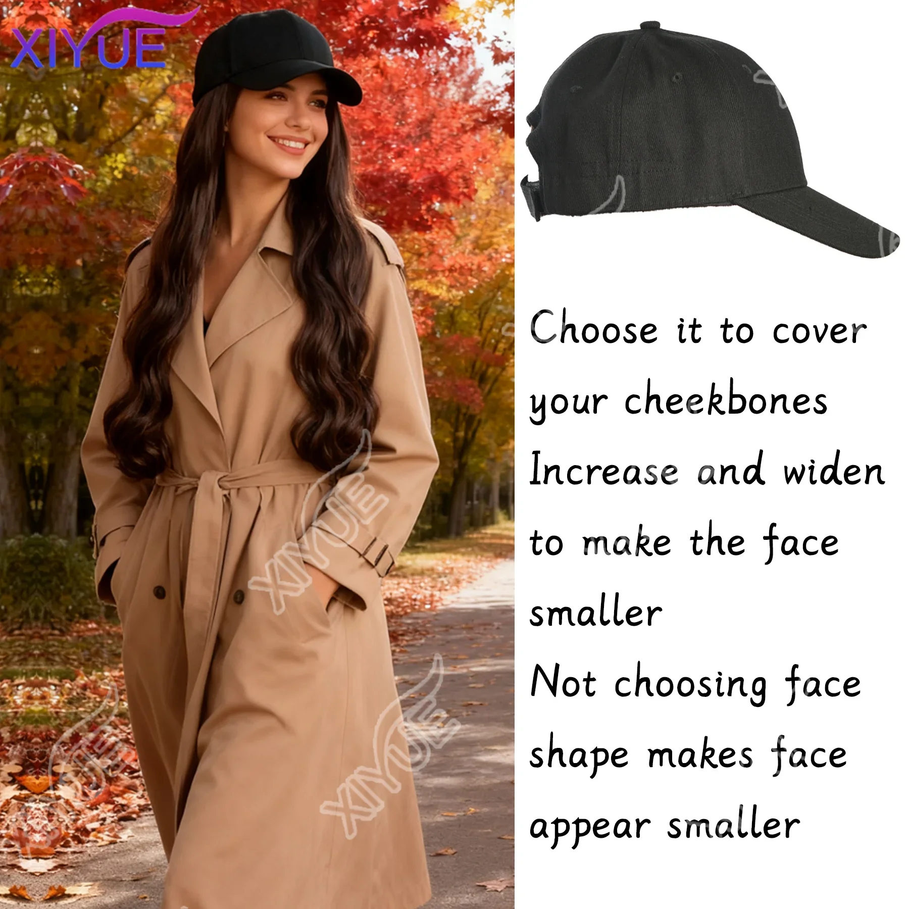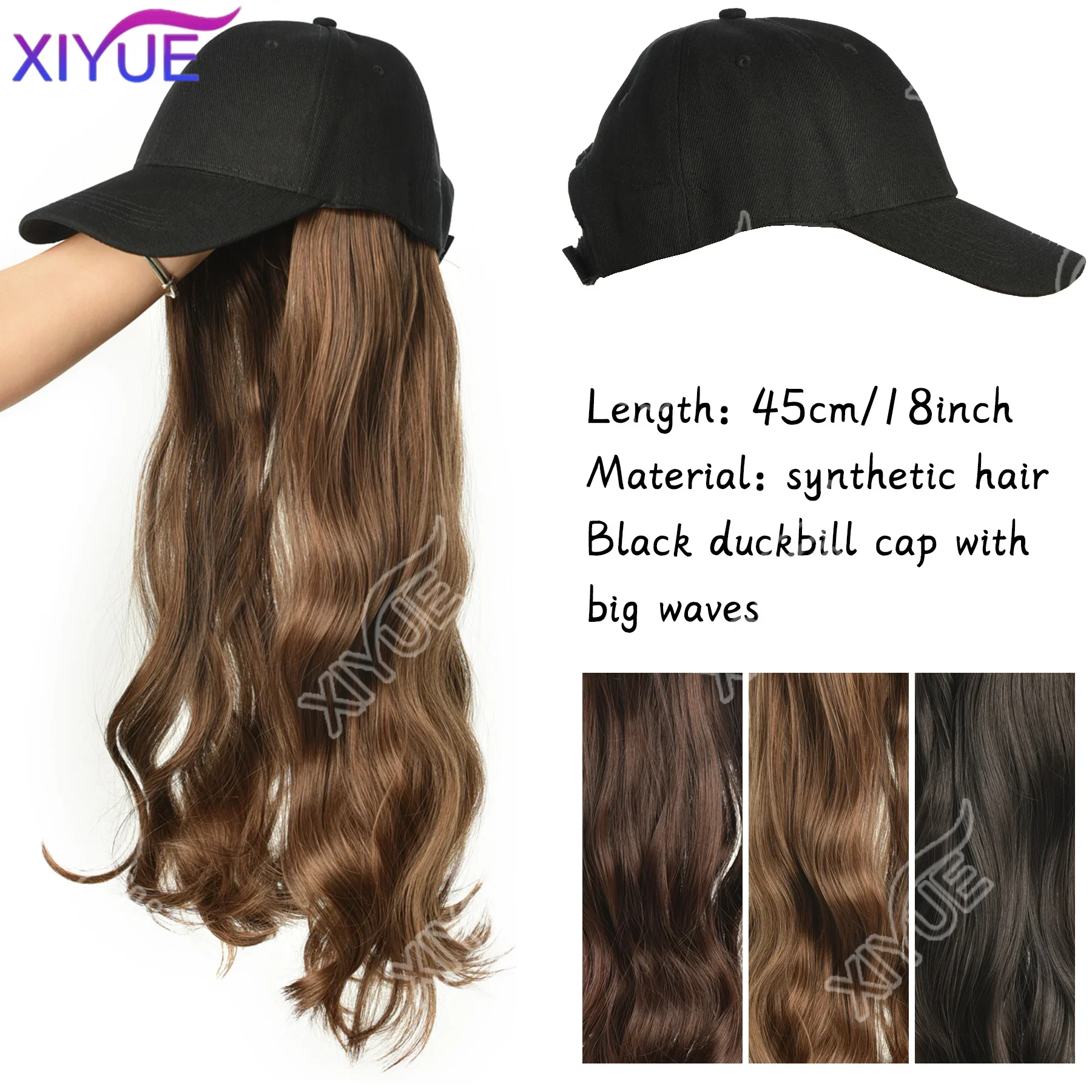 This women’s baseball cap wig features long wavy curly synthetic hair attached to an adjustable cap. Lightweight and easy to wear, it delivers instant style for daily use in classic black or brown shades.