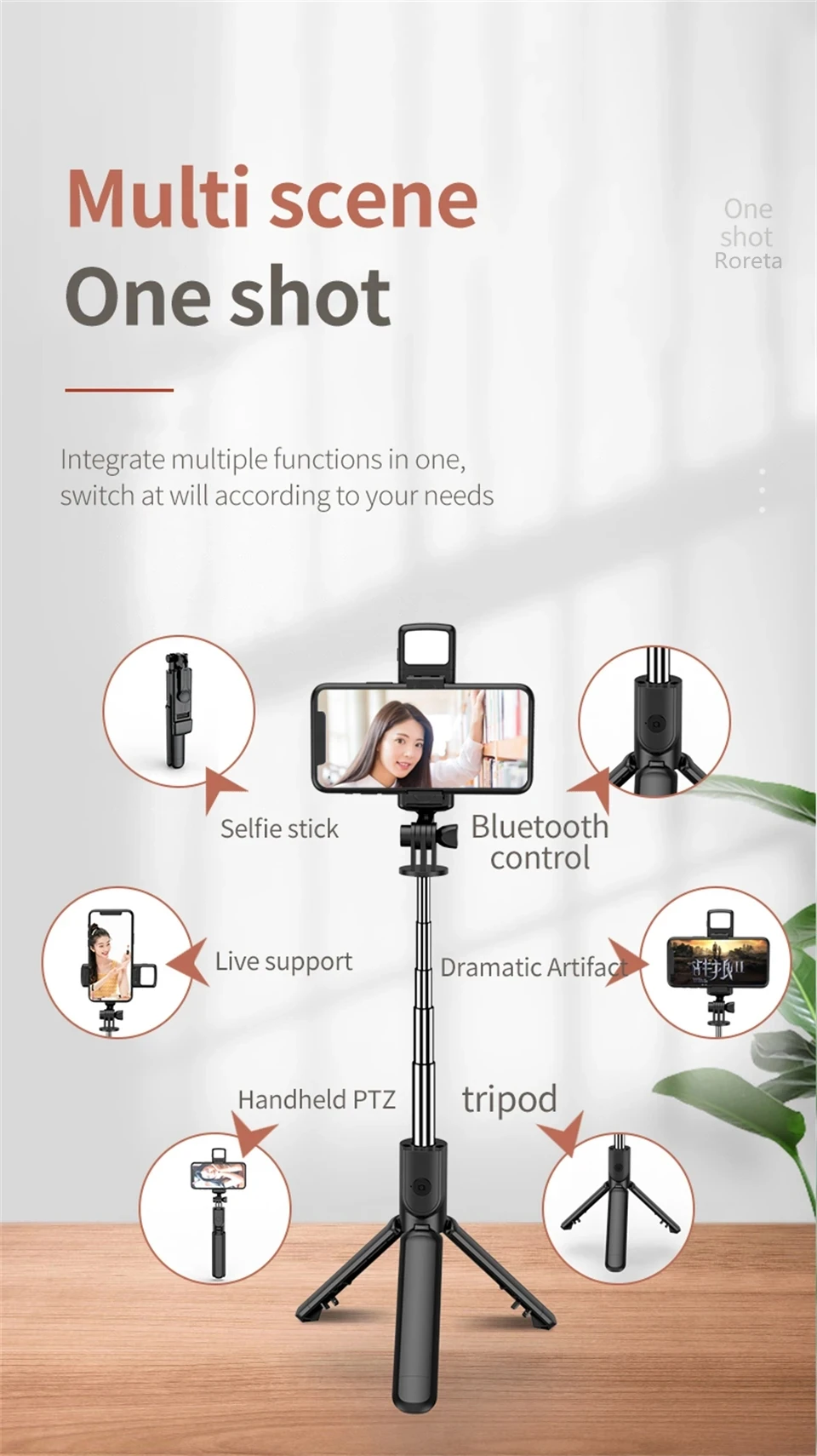 The design of the selfie tripod with remote control combines practicality, allowing you to freely adjust its height to meet different needs in different occasions. Its weight is very light, it will not bring you any burden when used, and it is easy to carry. You can easily put it in your backpack, making it the perfect travel companion
