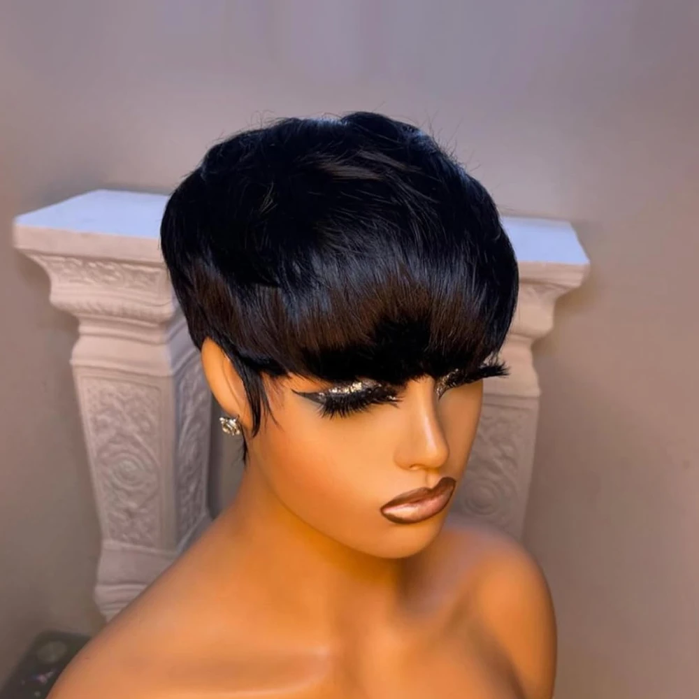 Achieve a clean, confident look with this straight pixie cut human hair wig. Fully machine-made with 150% density and a 6-inch length, it offers natural volume, easy wear, and all-day comfort. Perfect for daily style with a polished finish.