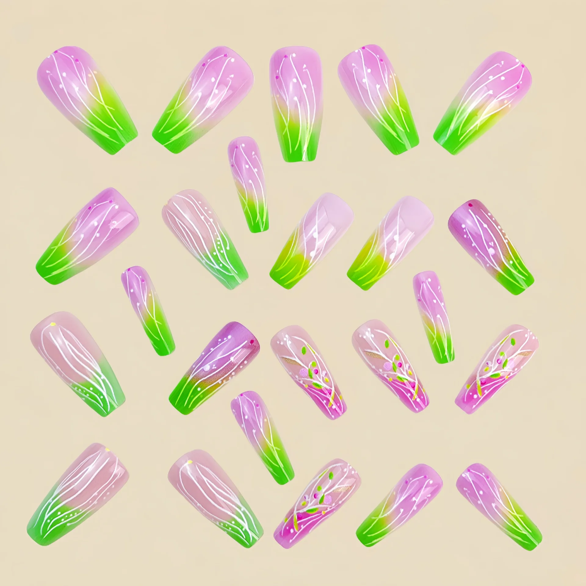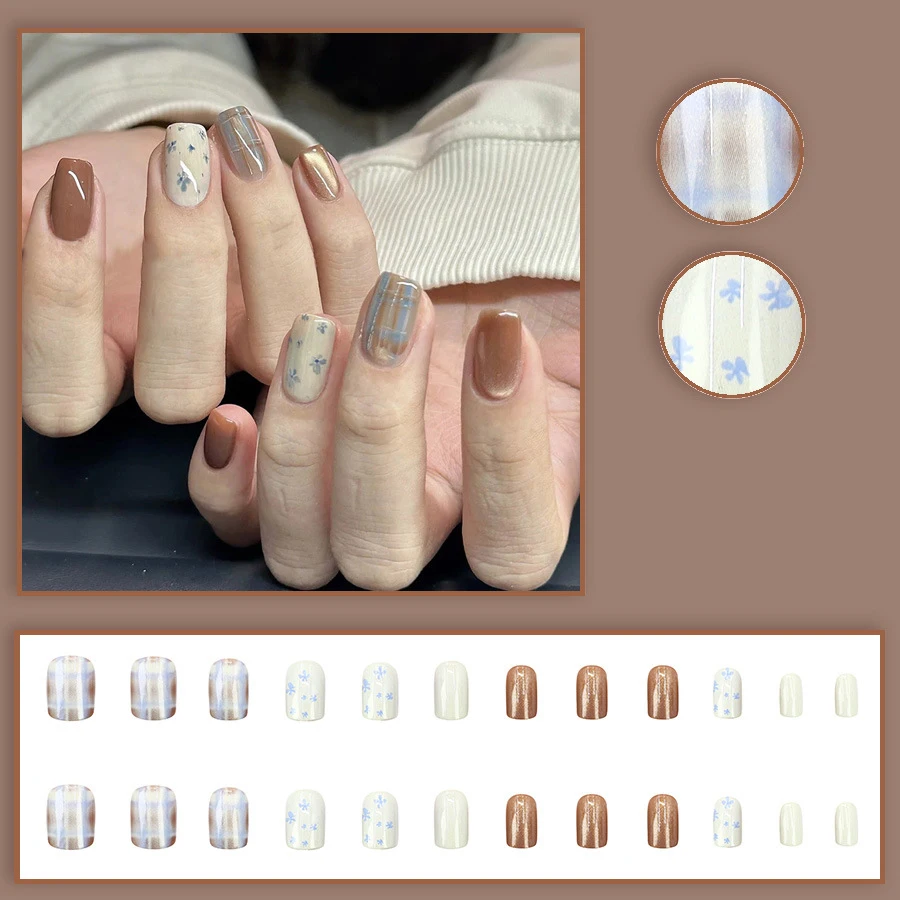 1. 24pcs/set Medium long fake nails for women girls