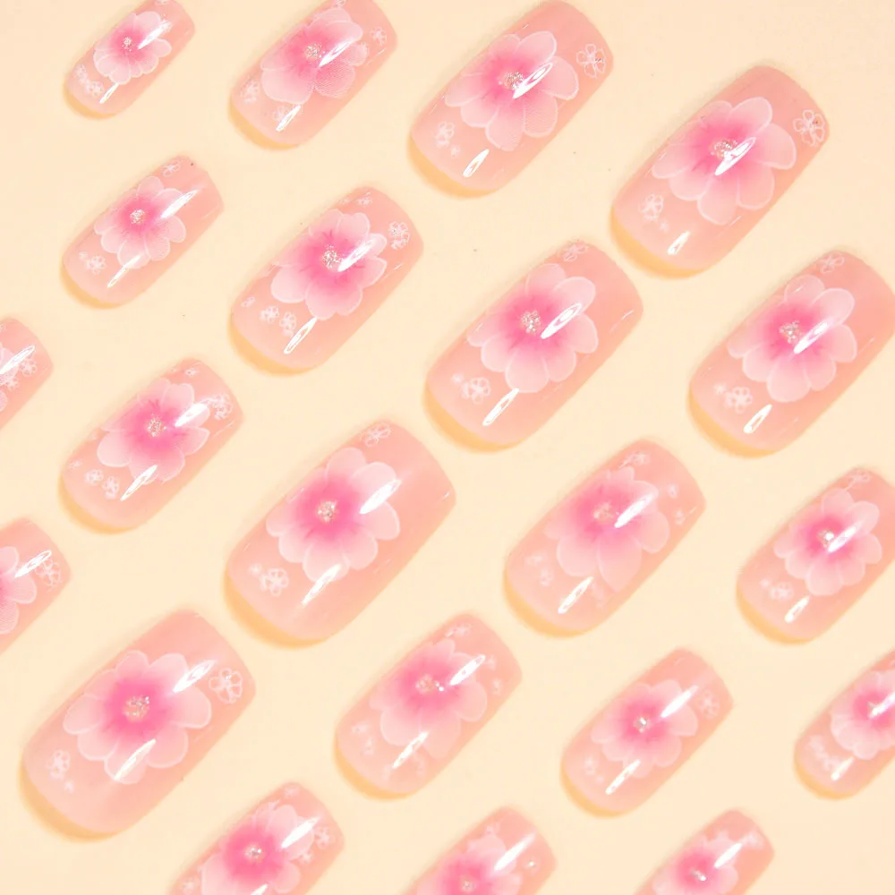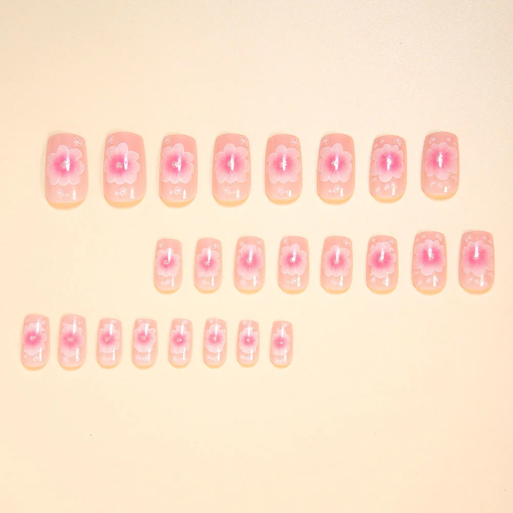 24pcs/set Medium long fake nails for women Gradient purple Pink red flowers Y2K ballet Square summer tips press on false nails