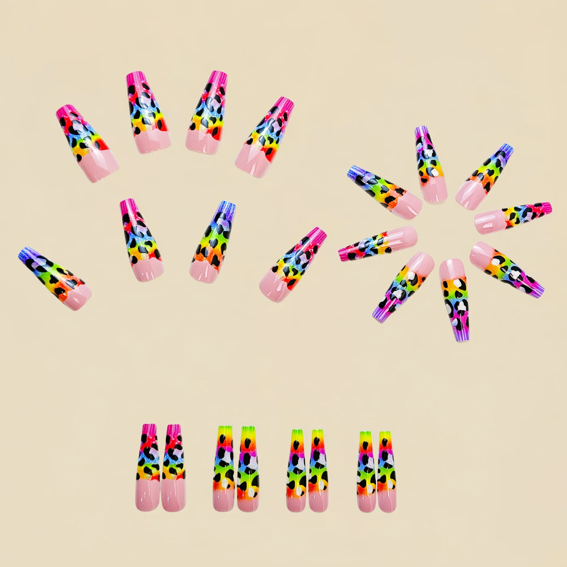 fake nails color: Gradient leopard nails