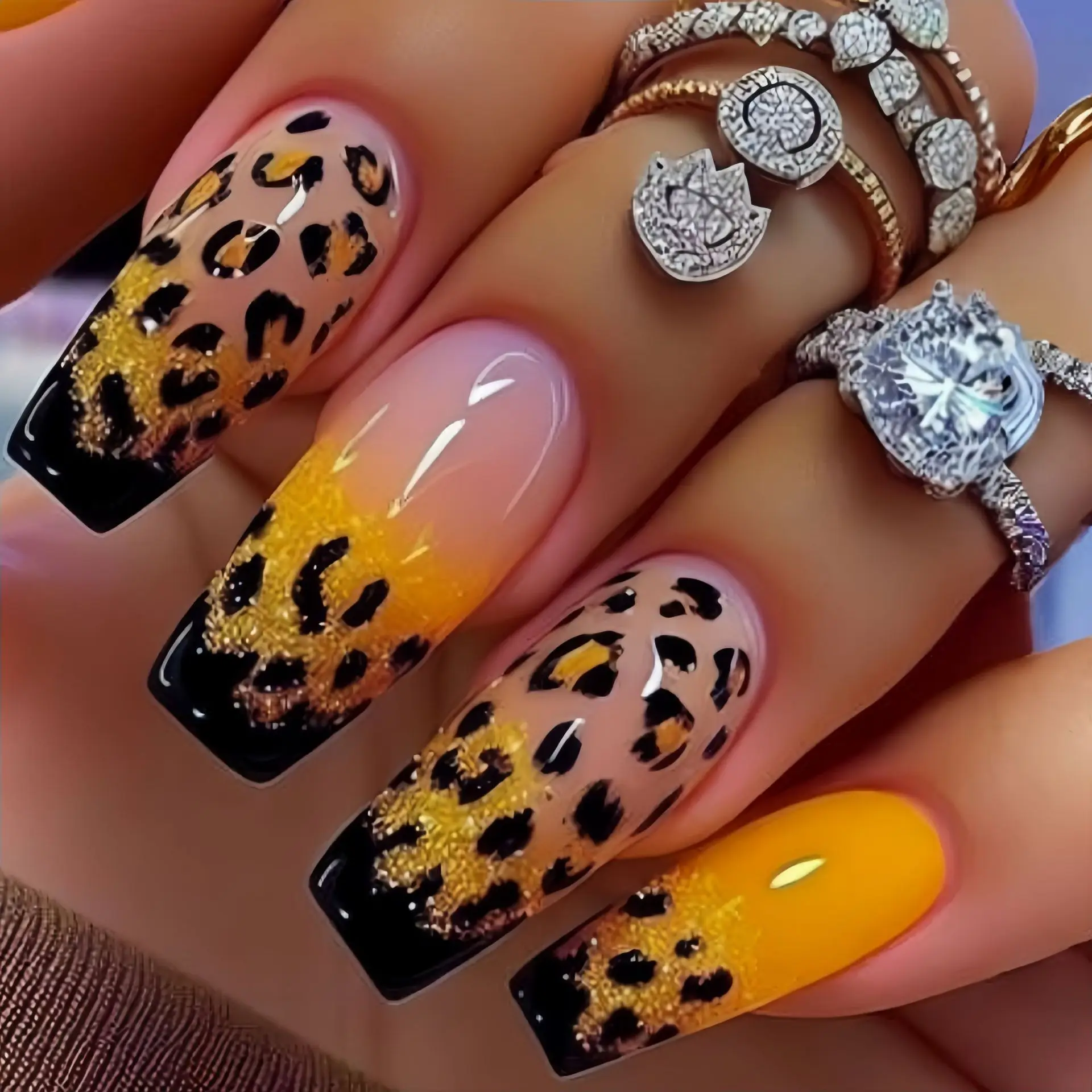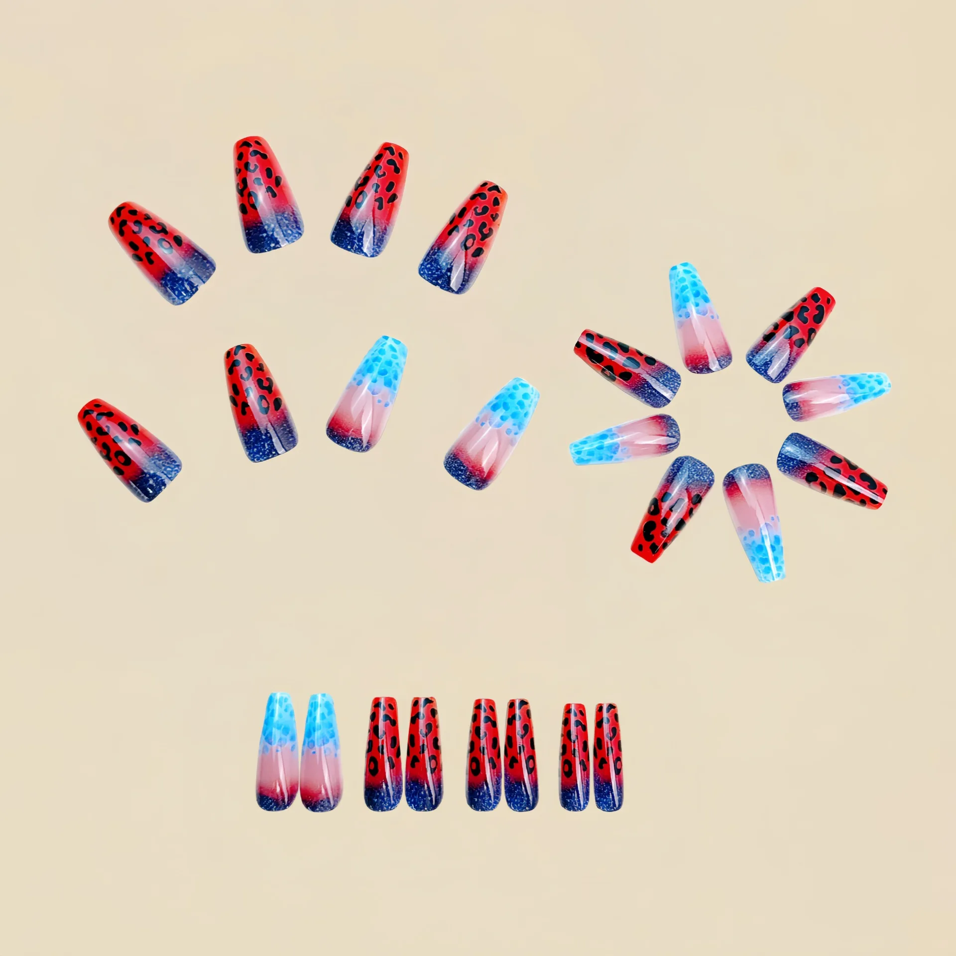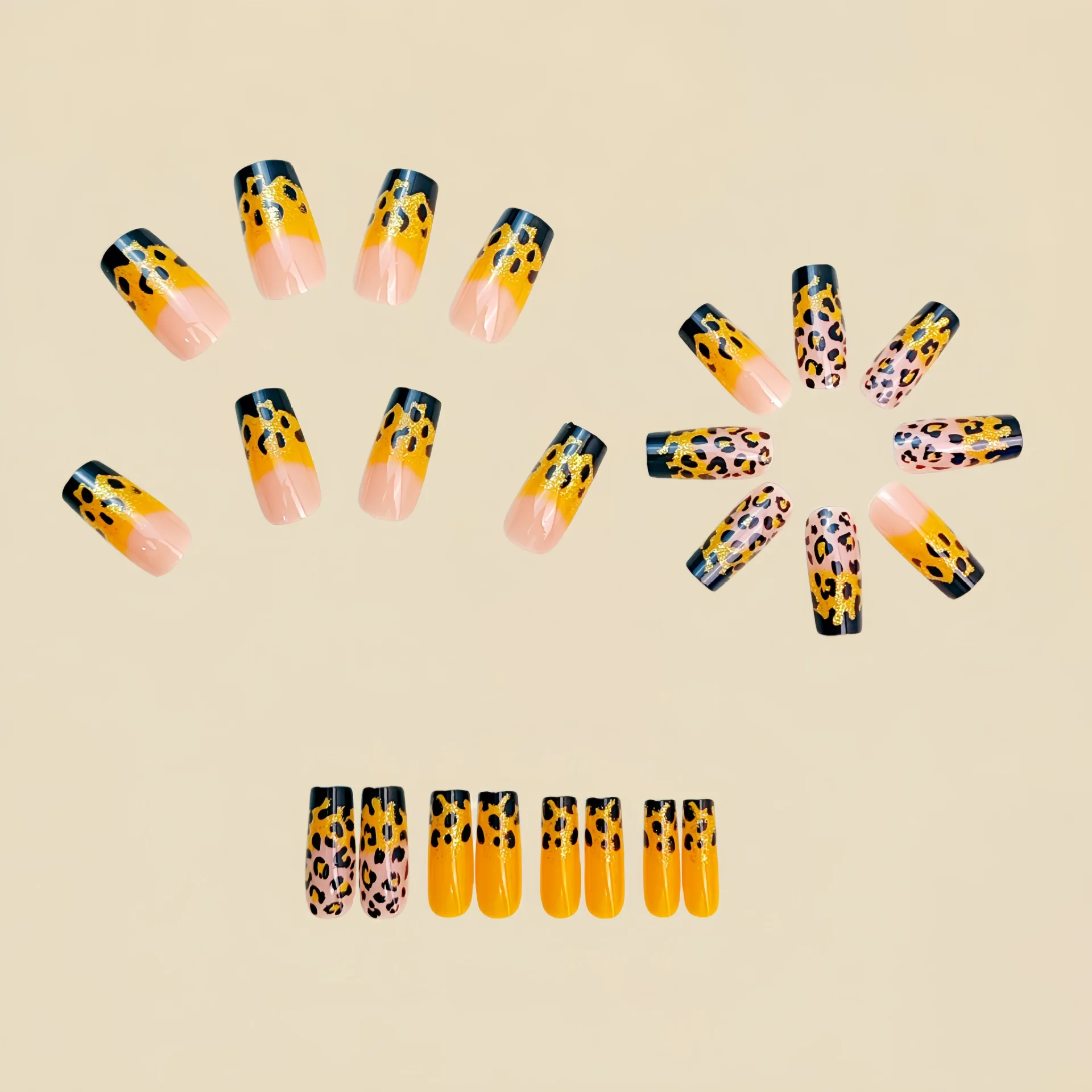 2. Fashion gradient leopard nail tips for summer season