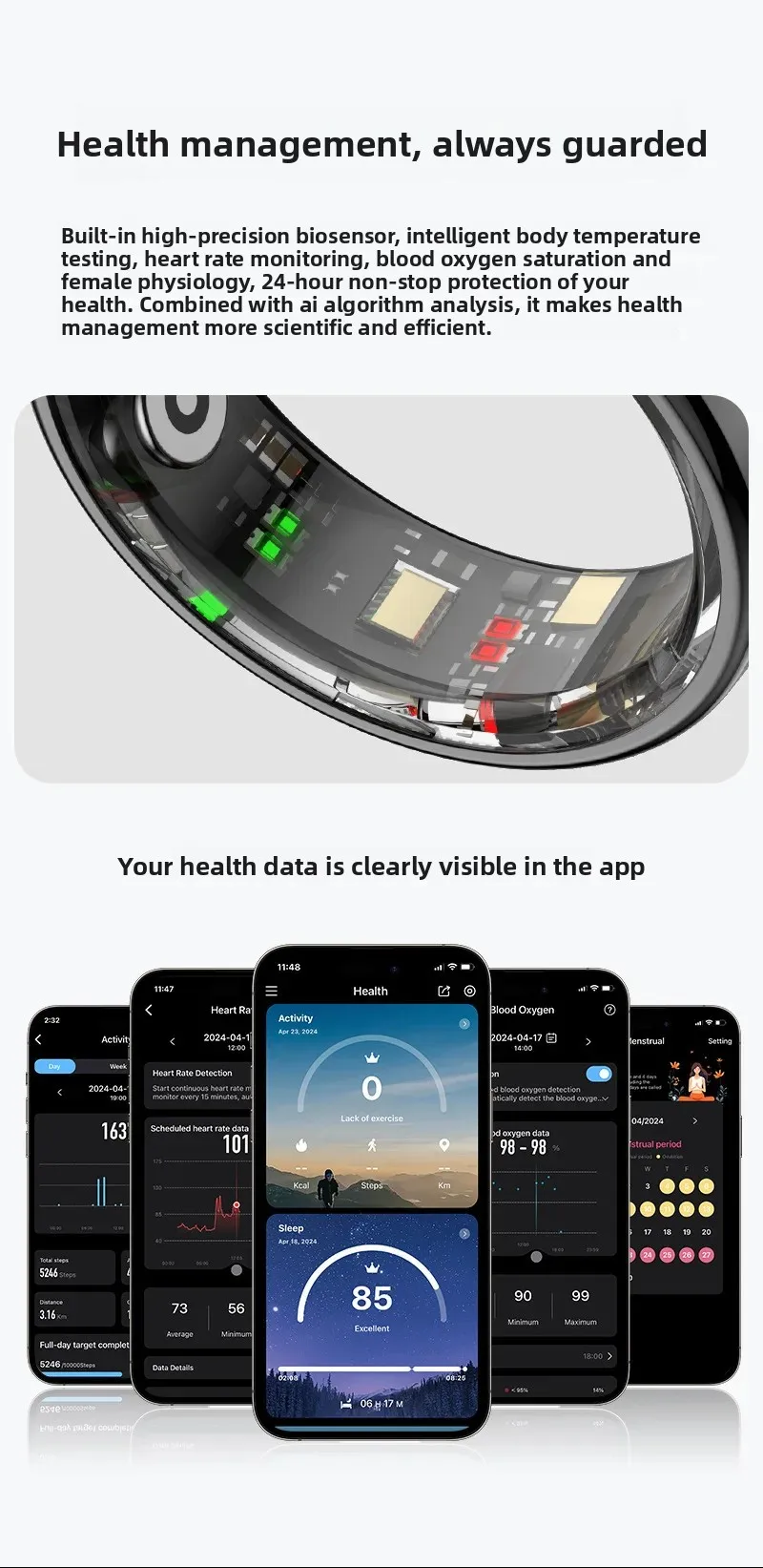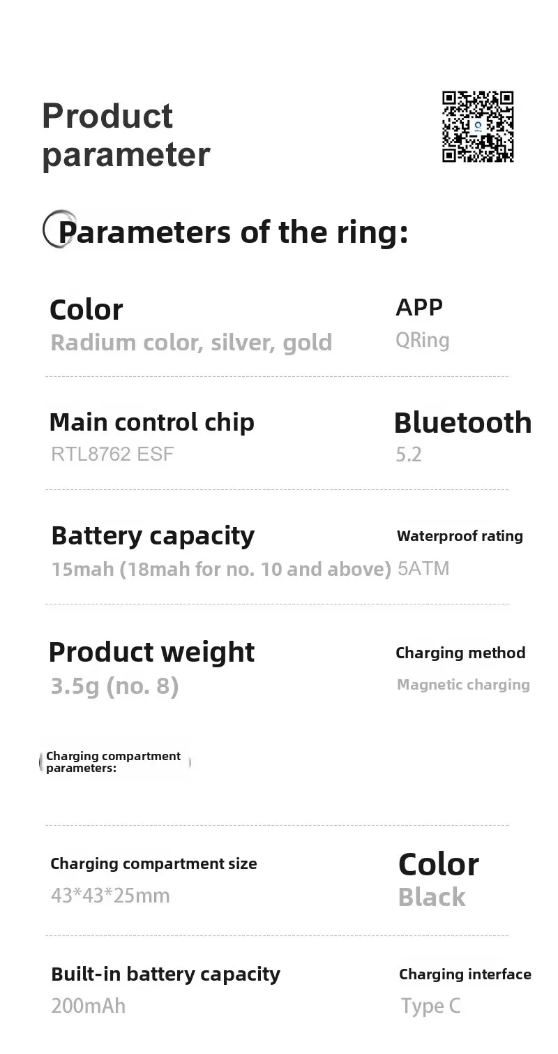 • Waterproof Design : The R08(QRING) smart ring boasts a waterproof design, allowing you to track your health metrics even while swimming or showering.