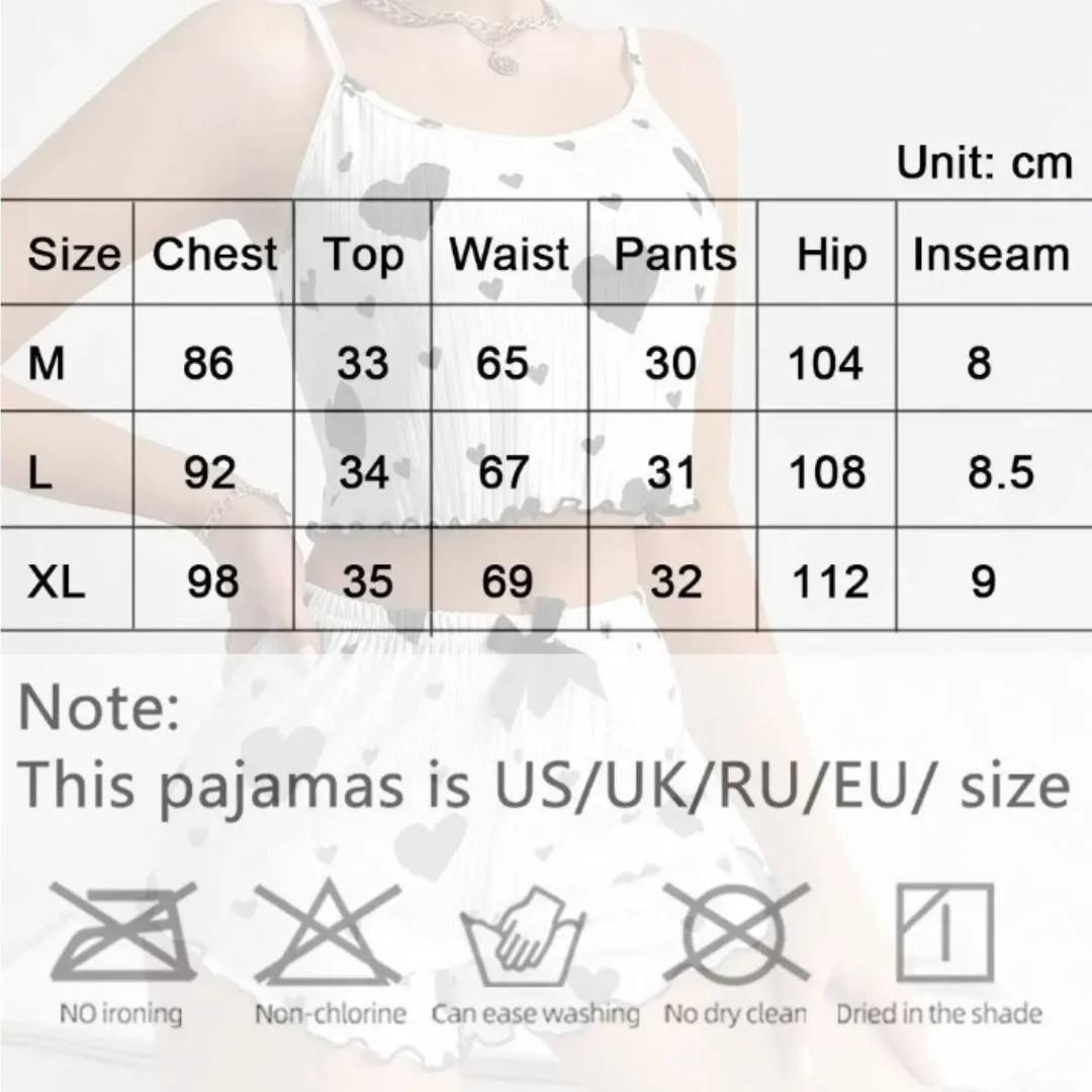 Women pajamas plus size pajamas set 2 piece short vest + trouser white breathable soft casual love print